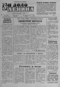 .. ........... .. .............................................. ................................................ I ...... i l l З А Д Е Л О Л Е Н И Н А n i u i i i i i i i i i i i i i i i i i i i H m i m i i i i m i m 1 0 февраля 1 9 7 6 года + № 1 8 УВЕРЕННЫЙ ФИНИШ ПЯТИЛЕТКИ Н а о с н о в е ш и р о к о р а з в е р н у в ш е г о с я в с е н а р о д н о г о с о ц и а л и с т и ч е с к о г о с о р е в н о в а н и я о б е с п е ч е н о у с п е ш н о е в ы п о л н е н и е г о с у д а р с т в е н н о го п л а н а 1 9 7 5 г о д а , г о в о р и т с я в с о о б щ е н и и Ц С У С С С Р об и т о г а х в ы п о л н е н и я р а з в и т и я н а р о д н о г о х о з я й с т в а С С С Р в 1 9 7 5 г о д у . Н а ц и о н а л ь н ы й д о х о д с о с т а в и л 3 6 2 м и л л и а р д а р у б л е й и у в е л и ч и л с я з а г о д н а 14 м и л л и а р д о в р у б л е й . П р о д у к ц и я п р о м ы ш л е н н о с т и в о з р о с л а п о с р а в н е н и ю с 1 9 7 4 г о д о м н а 3 7 м и л л и а р д о в р у б л е й и с о с т а в и л а б о л е е 5 2 0 м и л л и а р д о в р у б л е й . П р о д у к ц и я с е л ь с к о г о х о з я й с т в а в 1 9 7 5 г о д у с о с т а в и л а 9 0 м и л л и а р д о в р у б л е й . П р о и з в о д и т е л ь н о с т ь т р у д а в п р о м ы ш л е н н о с т и в о з р о с л а н а 5 , 9 п р о ц е н т а п р о т и в 5 , 7 п р о ц е н т а по п л а н у , з а с ч е т п о в ы ш е н и я 1 п р о и з в о д и т е л ь н о с т и т р у д а п о л у ч е н о 8 0 п р о ц е н т о в п р и р о с т а о б ъ е м а п р о и з в о д с т в а . В 1 9 7 5 г о д у д л я с е л ь с к о г о х о з я й с т в а в б о л ь ш и н с т в е р а й о н о в с т р а н ы с л о ж и л и с ь и с к л ю ч и т е л ь н о н е б л а г о п р и я т н ы е п о г о д н ы е у с л о вия . О д н а к о п о с л е д о в а т е л ь ное п р о в е д е н и е в ж и з н ь п р о г р а м м ы по у к р е п л е н и ю м а т е р и а л ь н о - т е х н и ч е с к о й б а з ы с е л ь с к о г о х о з я й с т в а , х и м и з а ц и и и м е л и о р а ц и и з е м е л ь п о з в о л и л о к о л х о з а м и с о в х о з а м о с л а б и т ь о т р и ц а т е л ь н о е в л и я н и е п о г о д н ы х у с л о в и й . В а л о в о й сб о р з е р н а с о с т а в и л 1 4 0 м и л л и онов т о н н . П р о и з в о д с т в о к а р т о ф е л я с о с т а в и л о 8 8 , 5 м и л л и о н а т о н н , ч т о н а 9 п р о ц е н т о в б о л ь ш е , ч е м в 1 9 7 4 го д у . В 1 9 7 5 г о д у , г о в о р и т с я д а л е е в с о о б щ е н и и Ц СУ СССР, " с о о р у ж е н о и в с т у п и л о в с т р о й б о л е е 3 0 0 н о в ы х к р у п н ы х г о с у д а р с т в е н н ы х п р о м ы ш л е н н ы х п р е д п р и я т и й . К а п и т а л ь н ы е в л о ж е н и я в н а р о д н о е х о з я й с т во с о с т а в и л и б о л е е 1 1 4 м и л л и а р д о в р у б л е й и в о з р о с л и по с р а в н е н и ю с 1 9 7 4 г о д ом н а 9 п р о ц е н т о в . С р е д н е г о д о в а я ч и с л е н н о с т ь р а б о ч и х и с л у ж а щ и х в н а р о д н о м х о з я й с т в е с о с т а в и л а 1 0 2 , 2 м и л л и о н а ч е л о в е к и у в е л и ч и л а с ь з а год н а 2 , 4 м и л л и о н а ч е л о в е к . Ч и с л е н н о с т ь к о л х о з н и к о в , з а н я т ы х в о б щ е с т в ен н о м х о з я й с т в е к о л х о з о в , с о с т а в и л а 1 5 , 7 м и л л и о н а ч е л о в е к . С р е д н е м е с я ч н а я д е н е ж н а я з а р а б о т н а я п л а т а р а б о ч и х и с л у ж а щ и х с о с т а в и л а 1 4 6 р у б л е й п р о т и в 1 4 1 р у б л я в 1 9 7 4 г о д у . Оп л а т а т р у д а к о л х о з н и к о в в о з р а с л а н а 3 п р о ц е н т а . В ы п л а т ы и л ь г о т ы , п о л у ч е н н ы е н а с е л е н и е м и з о б щ е с т в е н н ы х ф о н д о в п о т р е б л е н и я , с о с т а в и л и о к о л о 9 0 м и л л и а р д о в р у б л е й и у в е л и ч и л и с ь з а г о д н а 6 , 5 м и л л и а р д а р у б л е й . Ж и л и щ н ы е у с л о в и я у л у ч ш е н ы п о ч т и 11 м и л л и о н а м ч е л о в ек . Ч и с л е н н о с т ь н а с е л е н и я С о в е т с к о г о С о ю з а н а 1 я н в а р я 1 9 7 6 г о д а с о с т а в и л а 2 5 5 , 5 м и л л и о н а ч е л о в е к . ( Т А С С ) У ч а с т н и к и п р о х о д и в ш е г о