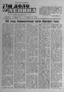 Пролетарии всех стран, соединяйтесь! «а д ш и Орган Северного райкома КПСС и районного Совета трудящихся Новосибирской области депутатов Советская страна, н арод наш п р ош л и нелегкий, но славный путь. Я д у м а ю , что каждый из нас, коммунистов, если бы е г о спросили, хотел ли бы он избрать д р у г у ю д оро г у , ответил бы: нет. Наша д о р о г а — это д о р о г а правды, д орог а свободы, э т о — д о р о га народного счастья. (Из Отчетного доклада тов. БРЕЖНЕВА Л . И. № 26 (4376) 28 ф евр а ля 1976 года Газета выходит три раза Цена на XXV съезде КПСС) Г Год издания 41-й СУББОТА в неделю 2 коп. XXV съезд Коммунистической партии Советского Союза Москва. ТАСС. Штаб ленинской партии отчитывается перёд 15 миллионами коммунистов. перед всем советским народом, намечает перспективы на будущее, информирует мир об огромной по масштабам и политической важно- работе. Особо значительным и торжественным был первый день XXV съезда КПСС. Делегаты с огромным вниманием выслушали Отчетный доклад Центрального Комитета партии, с которым выступил Генеральный секретарь ЦК КПСС товарищ Л. И. Брежнев. Пятилетие, минувшее со времени XXIV съезда партии, для коммунистов, для всего нашего народа было периодом событий и дел громадного значения. Возросло могущество Родины. И материально и духовно советские люди стали жить богаче. Это, считает партия, безусловно самое важное. Сделан новый крупный шаг по созданию материально-технической базы коммунизма, в обеспечении безопасности страны. Таков политический итог экономической деятельности партии в период между с ъ е з дами, главный результат героического труда советских людей. В девятой пятилетке достигнуты более высокие, чем в любой из предшествующих, приросты промышленной продукции. На проведение новых социальных мероприятий было направлено столько же средств, сколько за две предыдущие пятилетки. Среди делегатов съ е з д а — ю тни передовиков и специалистов сельского хозяйства. К ним, работникам земледелия и животноводства, в первую очередь обращена та часть доклада ЦК, где дан глубокий анализ развития аграрных отраслей экономики страны. Большие и сложные задачи пгюдстоит решать труженикам тела в десятой пятилетке. Наиболее актуальная среди них —- дальнейший рост зернового производства. Посланцы строек девятой и десятой пятилеток с волнением восприняли теплые слова, с которыми обратился к коллективам первопроходцев товарищ Л. И. Брежнев. Он подчеркнул, что труд этих людей ставит на службу Родине огромные природные богатства, дает новую жизнь обширным районам Сибири, Севера, Средней Азии и Дальнего Востока. Для того, чтобы успешно решать многообразные задачи, стоящие перед страной, нет другого пути, кроме быстрого роста производительности труда, резкого повышения э ф фективности всего общественного производства. Упор на эффективность — важнейшая составная часть в экономической стратегии партии. Новая пятилетка, указывает партия* должна стать пятилеткой эффективности и качества. * * * 25 ф е вр а ля съезд продолжил работу. С докладом Централ ьной ревизионной комиссии КПСС выступил председатель комиссии Г. Ф. Сизов. Затем на съезде началось обсуждение Отчетного доклада Центрального Комитета КПСС и доклада Центральной ревизионной комиссии. Москвичи, как и все советские люди, сказал член Политбюро ЦК КПСС, первый секретарь Московск