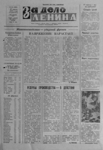 Пр ол ет ар ии всех с тран , соединяйтесь! № 38 (4388) 27 марта 1976 года СУББОТА Год издания 41-й Газета выходит три раза в неделю Цена 2 коп. Орган Северного райкома К П С С и районного Совета депутатов т руд ящ и хся Новосибирской области Животноводство — ударный фронт К в э р т а л Ь н Ь ш в Ь т о л н е н ОСТАНИНКА. (По телефону). Председатель сельсовета И. Сорокин сообщил: — Колхоз «7-й съ е зд Советов» досрочно выполнил к в ар тальный план по продаже государству молока и мяса. Причем, при условии сдачи еще шестидесяти центнеров мяса будет выполнен и полугодовой план продажи государству этого вида животноводческой продукции. Следует отметить хорошую работу доярок К. П. Ковган, А. Ф. Теплинской, 3. В. На- приенко скотника по откорму молодняка Петра Лоскутова. СУТОЧНЫЕ НАДОИ молока на корову ^ на 22 марта 1976 года ™ (в килограммах) По к о л х о зам . КОЛ Х О З 1,1 И з д о е н о п а к о р о в у 1976 г. 1975 г. Заветы Ильича 7,9 9,4 им. М. Горького 7,5 8.3 7-й съезд Советов 7,0 8,2 им- XXII съезда КПСС 6,9 8,0 Путь к коммунизму 6,5 8,2 Восход 6,5 6,8 Новая жизнь 6,4 6,0 Память Ленина 6,2 7,7 Борьба за мир 5.8 6,6 им. К. Маркса 5,4 4,9 По району 6 , 7 7 , 5 По ф ермам Медвсжинская 9,2 9,6 Ново-Троицкая 8,8 1 0,0 Томиловская 8,3 8,0 Рязанская 8,1 6.3 Надеждинская 8,0 7,5 Федоровская 7,9 8,5 Веселовская 7,8 9,0 Ударницкая 7,5 6,0 Михеевская 7,4 13,2 Сургутовекал 7,1 9,2 Северная 7,1 11,0 Гражданцевская 7,0 7,0 Чебаковская 7,0 7,8 В-Красноярская 6,7 8,3 Алешинская 6,6 7,6 Болыие-Жуликовская 6,5 6,9 Ново-Никольская 6,5 7,6 Остяцкая 6,3 5,9 Витинская 6,2 6,7 Чувашинская 6,2 6,9 Алексеевская 6,1 12,3 Кордоновская 6,0 8 ,0 Останинекая 6,0 9,4 Биазинская 5.9 7,9 Ичкалинская 5,8 5,7 Малиновская 5,5 8,4 Усть-Ургульская 5,2 8Д Ургульская 5,2 6,3 Ново-Покровская 5Д 5,9 Бергульская 5,0 5,3 Забоевская 5,0 6,8 11А ПРЯЖЕНИЕ НАРАСТАЕТ Подходит к концу первый квартал 1 97 6 года. Колхоз «Восход» за это время смог досрочно выполнить трехмесячный план продажи мяса государству: его отправлено 386 центнеров. Тридцать процентов сданной продукции принято было высшей упитанностью, шестьдесят пять — средней. Это, конечно, неплохо, но скот пошел мелко-' весный, всего лишь в 3 19 * килограммов одной головы в среднем, что отразилось на доходе и что еще раз напомнило животноводам и специалистам колхоза о неиспользованных резервах и о том, на что. следует обратить самое пристальное внимание. Квартальный план по про*., даже молока колхозу был определен в 1379 центнеров. За семь минувших декад была сдана половина, осталось около семисот центнеров. — Выполнить задание мы, вероятно, сможем, — подсчитывал председатель колхоза В. И. Драган. — Надои молока сейчас растут быстро. В ближайшие дни будем получать в сутки но 30 центнеров. • Постараемся улучшить кормовой рацион. Это все позволит справиться с планом, хотя и трудновато будет. Чебаковская молочнотоварная ферма сейчас надаивает молока по семь килограммов на корову в сутки, витинекие животноводы получают более шести- килограммов. — Анна Федоровна Афанасьева, Валентина Петровна Филимонова получают на корову по 7 — 7,5 килограмма молока, — рассказывала доярка С. Д. Назарова. — У остальных тоже хорошие, показатели. Молоок идет на прибавку. У А. Ф. Афанасьевой, например, ежедневная прибавка, молока составила два килограмма, .столько же — в группе Е. К. Ликаров- ской. По наибольшую добавку к надоям получает В. И. Филимонова, которая буквально за несколько дней догнала передовых доярок фермы, хотя в недавнем прошлом