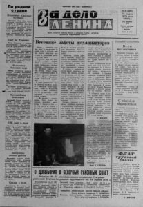 П о р о д н о й с т р а н е Подземные кладовые К у з б а с с а Кемерово. Еще одно месторождение коксующегося угл я открыто в Кузбассе. Его на з вали «Томское»: оно находится в верховьях реки Томи. Новая подземная кладовая хранит более полумиллиарда тонн топлива. Месторождение расположено неподалеку от металлургических предприятий КузбасПролетарии всех стран, соединяйтесь! са. Сеет юг Украины Киев. Посевные и почвообрабатывающие агрегаты вывели на поля колхозы и совхозы юга Украины. .Нынешняя весна заметно з а поздала: пока забороновано .полмиллиона гектаров зяби, а *^ев проведен на 15 тысячах гектаров. С первых дней хлеборобы южных районов развернули соревнование за перевыполнение норм выработки, отличное качество работ. Разольётся Липецкое море Липецк. Строители закрыли затворы плотины Матырского водохранилища и приступили к затоплению паводковыми водами нового Липецкого моря. Его чаща примерно 85 миллионов кубометров воды. Хранилище обеспечит водой Новолипецкий металлургический з а вод. ' - ; На берегу рукотворного моря — его площадь достигнет 120 квадратных километров — уже вырос рабочий поселок.4 Кустанайские комплексы Кустанай. Самый крупный в. области молочно - товарный комплекс на 1100 коров сдан в эксплуатацию на территории сельскохозяйственной опытной станции. Все производственные процессы здесь механизированы. Из штатного р а с писания исключены должности доярок: их заменили операторы машинного доения, к аж дый из которых будет обслуживать 180 коров. ЛЭП идет в поля Арзамас. (Горьковская область). В колхозе «Мировой октябрь» началось сооружение ЛЭП. От подстанции мощностью 80 0 киловатт она уйдет в поля, чтобы обеспечить р а боту оросительной системы на луковых плантациях хозяйства. В нынешнем году в «Мировом октябре» впервые В практике возделывание этой исконно ручной, трудоемкой культуры будут в е с ти ,м аш ины . Механизаторы хозяйства решили получить не менее 215 центнеров л ука с гектара. Завершены зимние работы Восточный участок БАМа. (Хабаровский край). Основные зимние работы завершены на перекате «Горный» в верховьях таежной реки Зеи . Путейцы - речники использовали морозную пору, чтобы с помощью взрывов убрать валуны на пути к новому поселку строителей БАМа — Зейску. Со дна рек, находящихся в зоне магистрали, предстоит извлечь почти шесть миллионов кубометров грунта. Сеялки в поле Ставрополь. На массивах, где прог релась и подсохла почва, механизаторы степных районов Ставрополья начали сев зерно* вых. В колхозах и совхозах к р а я под хлеба отведено нынче более двух миллионов гектаров пашни. \ссг %Я Д С / 1 1 1 Орган Северного райкома КПСС и районного Совета депутатов трудящихся Новосибирской области 31 марта 1-976 года СРЕДА Год издания 41-й Г а з е т а выходит три р а з а в - неделю Цена 2 коп. Весенние заботы механизаторов Наряду с решением сложных задач по завершению зимовки скота в колхозах района ведется деятельная подготовка к проведению весенне-полевых” работ. Машинный двор на центральной усадьбе колхоза «Путь к коммунизму». Здесь царит оживленная, трудовая атмосфера. Механизаторы спешат закончить ремонт тягачей, шоферы готовят автомобили к предстоящим рейсам по доставке семенного материала в поле. Всюду чувствуется хорошо отлаженный трудовой ритм. В такое ответственное время главного инженера колхоза С. Жигалова 