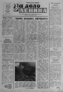 № 42 (4392) 6 апреля 19 7 6 года Вторник Год издания 41-й Газета выходит три р а з а в неделю Цена 2 коп. Пролетарии всех стран, соединяйтесь! Д и л w N Я I Орган Северного райкома КПСС и районного Совета депутатов трудящихся Новосибирской области Награды Родины Президиум Верховного Совета СС С Р ^ н а г р ад и л орденами и медалями большую группу рабочих, инженерно - технических работников и служащих предприятий и организаций лшнистерства легкой промышленности СССР. З а успехи, достигнутые в выполнении з а даний девятой пятилетки и принятых социалистических обязательств, по Новосибирской области награждено: орденом Октябрьской Рево люции один человек, орденом Трудового Красного Знамени 9 человек, орденом « З н ак Почета» — 15, орденом Трудовой Славы III степени — 12, медалью « З а трудовую доб- • лесть» — 9 и медалью « З а трудовое отличие» — 13 человек. Премии передовикам соревновании Подведены итоги Всероссийского социалистического соревнования за увеличение производства и заготовок сельскохозяйственных продуктов в 1 9 7 5 году — в завершающем году девятой пятилетки. В этом соревновании присуждены классные места с вручением Почетных грамот Новосибирского облисполкома и обл- еовпрофа и денежных премий: Коллективу В е р хК р а с н о я р с ко й бригады колхоза «Память Ленина» (бригадир Н, А. Литвяков) — Почетная грамота и денежная премия в сумме 7 50 рублей; Коллективу Сур г утов ско й молочнотоварной фермы колхоза имени Максима Горького (заведующий С. В. Яковлев) — Почетная грамота и денежная премия в сумме 7 5 0 рублей; Коллективу Ичкалинской мо лочнотоварной фермы колхоза имени Карла Маркса (заведующая 3. И. Балкина) — Почетная грамота и денежная премия в сумме 5 00 рублей. Сердечно поздравляем полеводов и животноводов, занявших классные места во Всероссийском социалистическом соревновании, желаем им дальнейших успехов в труде. Мы призываем всех работников животноводства и механизаторов шире развернуть социалистическое соревнование за повышение культуры земледелия, на производстве молока, мяса, за высокое качество сельскохозяйственных продуктов в десятой пятилетке. П. А Л Е К С Е Е В , председатель райкома профсоюза работников сельского хозяйства I и заготовок . Бережно .. нефтепродукты Тракторы и автомобили, работающие в сельском хозяйстве, повседневно потребляют большое количество топлива и смазочных материалов. Стоимость их составляет 2 0 —22 процента всех за тр а т на гектар тракторных работ. При современной энергонасыщенности колхозов техникой бережное и экономное расходование нефтепродуктов имеет огромное значение в снижении себестоимо- ^ л г м . п и л и . з н и с т в е н н о г продукции. Ведь если буде' допущен перерасход горю чего хотя бы на один про цент, то ущерб, нанесенны! народному хозяйству, выра зится в несколько десятко! миллионов рублей. А еслг бы мы добились экономна одного процента топлива г пределах района, то смоглт бы вспахать на сэкономленном горючем более двух сот гектаров Дополнительно потому что расходуется топлива в период несение полевых работ в пределах 1 2 5 0 — 1 300 тонн. Прежде чем топливо попадет в бак, а масло в к ар т ер двигателя, их неоднократно принимают, отпускают, перевозят и длительное время хранят, что, естественно, связан о с неизбежными потерями. А из- за небрежного обращения с этими нефтепродуктами в ряде колхозо