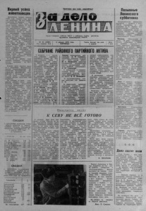 Первый успех животноводов Закончился первый квартал 1976 года, первого года десятой пятилетки. Он был особым кварталом. В феврале — марте состоялся XXV съ е з д великой партии Ленина. В честь этого знаменательного события животноводы района соревновались за высокую продуктивность скота, за досрочное выполнение квартального плана поставок государству молока и мяса. В соревновании наиболее хороших резуль татов добились животноводы колхозов им. М. ' Горького, «7-й съ е з д Советов», имени Карла Маркса, «Путь к коммунизму», им. XXII съезда КПСС, «Борьба за мир». Эти шесть хозяйств выполнили и перевыполнили квартальное задание по поставкам молока. Сверх плана на приемные пункты они отправили более тысячи центнеров. В целом по району план- задание поставок государству молока выполнен на 101,4 процента. Хорошо вели закупки молока у населения Верх-Красно- ярский, Гражданцевский, Че- баковекий. Чувашинский, Федоровский, Биазинский, Оста- нинский и Остяцкий сельсоветы, где сверх квартального задания молока закуплено 340 центнеров. По откорму и сдаче государству мясного скота среди колхозов лучших результатов достигли животноводы колхозов «Память Ленина», «Путь к коммунизму», «7-й съ е зд Советов», «Новая жизнь» и другие. Квартальный план поставок скота государству выполнен колхозами на 110,3 процента, а в целом по району (с учетом закупок у населения) — на 111,7 процента. Сверх плана мясного скота отправлено на заготпункты 550 центнеров. При этом по сравнению с первым кварталом 1975 года мяса закуп лено на 478 центнеров или на 10 процентов больше. с в о д к а о выполнении колхозами плана первого квар тал а (с учетом задания) поставок государству продуктов животноводства н а ' 1 апреля 1976 года (в процентах) Колхозы мп око \ \ и СО им. М. Горького 146 72 7-й с ъ е з д Советов 118 117 им. К. Маркса 103 73 Путь к коммунизму 101 131 Борьба за мир 101 113 им. XXII съезда КПСС 100 100 Память Ленина 96 134 Восход 90 111 Зав еты Ильича 86 103 Новая жизнь 67 121 По колхозам 100 110 По району 101 111 сводка о выполнении сельсоветами квартального задания по з а купкам у населения продуктов животноводства на 1 апреля 1976 года (в процентах) • Сельсоветы XО МЯСО Чебаковский 220 25 Федоровский 204 — Биазинский 183 25 Гражданцевский 172 — Останинский 135 — Верх-Красноярский 134 152 Чувашинский 130 200 Остяцкий 125 — Ново-Троицкий 31 — Бер гульский 28 — Северный — 462 Потюкановский — — По сельсоветам 1 3 7 1 4 2 Позывные Л е н и н с к о го субботника Пр ол ет ар ии всех с т р а н , с оед и няйт есь ! i l f r / I U Орган Северного рай кома КПСС и районного Совета деп утато в трудящихся Новосибирской области № 4 3 ( 4 3 9 3 ) 9 а п р е л я 1 9 7 6 г о д а Г азета выходит три р аз а I од издания 41-й .. ПЯТНИЦА в неделю СОБРАНИЕ РАЙОНОГО ПАРТИЙНОГО АКТИВА 6 ф е вр а л я с. г. состоялось собрание районного партийного актива. На нем присутствовали члены и кандидаты в члены райкома КПСС, члены ревизионной комиссии, секретари партийных организаций, руководители колхозов, промышленных предприятий, сельсоветов и другой актив. С докладом «Итоги работы XXV съ езд а КПСС и за д а чи районной партийной организации» выступил первый секретарь райкома партии тов. Денисов И. Ф. В обсуждении докл ада приняли участие секретарь парторганизации райпо П. К. Костин, председатель колхоза имени К. Маркса А. Е. Андреев, бригадир Больше - Куликовской бригады колхоза «Память Ленина», делегат XXV съ езд а КПСС Е. Ф. Кулик