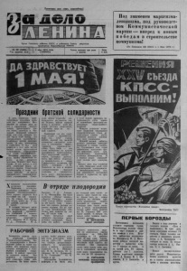Пролетарии всех стран, соединяйтесь! U п и л V __ ь р Орган Северного райкома КПСС и районного Совета депутатов _______ _______ трудящихся Новосибирской области ___ № 5 3 (4403 ) 1 мая 1976 года Газета выходит три раза Цена - Год издания 41-й СУББОТА в неделю 2 коп Праздник братской сояндарностн В день Первомая море пурпурных полотнищ з а л и вает все континенты. Возникший на рубеже двух веков в героических выступлениях пролетариата против гнёта; капитала и бесправия, Первомай собирает ныне под: свои знамена людей трудД всей земли, все прогрессивное человечество, борющееся против империализма, за мир, демократию и социализм. И над всей планетой в этот день звучит боевой лозунг пролетарской солидарности «Пролетарии всех стран,, соединяйтесь!». Весенним цветением природы, ярким убранством городов и сел встречает праздник Первого мая наша страна. И как всегда, в этот день советский народ р апортует партии, Советскому правительству о своих т р у довых победах, об итогах предмайского социалистичет ского соревнования. Советский народ, укреп ляя экономическ е могущество своей Родины, вносит важный вклад в развитие всей ми. ровой системы социализма, в упрочение мира на нашей планете. Нынешний год для советских людей — знаменатель ный год XXV съезда КПСС, первый год десятой пятилетки, пятилетки качества и повышения эф ф е к тивности производства. «Мир, Труд, Май» — эти слова начертаны на кумаче праздничных транспарантов. Труд неразрывно свя зан с миром. Активная д е я те л ь ность ЦК КПСС, Советского правительства и лично Генерального секре таря ЦК КПСС товарища Л. И. Брежнев а за мир и мирное сосуществование снискали уважение и признательность всего прогрессивного человечества. Достигнутая в этой борьбе р азр ядк а напряженности ст ала одним из важнейших факторов современно?© общественного развития. Новыми успехами встречают Первомай трудящиеся социалистических стран, демонстрируя своими достижениями великую жизненную силу социализма. Мощной волной забастовочного движения приходит Первомай в страны капитала. Трудящиеся этих стран решительно выступают против инфляции, роста цен, безработицы, агрессивной политики империализма. И в первых рядах первомайских колонн идут коммунисты. Высоко реет н а д ' планетой в день Первомая алый стяг пролетарской солидарности и интернационализма, всел я я уверенность миллионам борцов в торжество их пра- вого дела. В отряде плодородия Хорошими показателями встречает праздник Первомая коллектив мехотряда районного объединения «Сельхозтехники». План первого кв ар т ал а был выполнен на 116 процентов. На апрель был определен объем работ на 6 тысяч рублей, сделано — на 11 тысяч. В теч ение четырех меся- цев механизаторы занимались вывозкой органических удобрений. С перевыполнением сменных норм трудились трактористы М. Г. Андреев, И. С. Орлов, Ю. Д. Почепкин, Ф. Д. Четвертого ап р ел я группа водителей Северной «Транссёльхозтехники» была командирована в Новосибирский район на своих м а шинах для подвозки строител ьных материалов к строящейся племенной птицеферме. К работе приступили седьмого ап реля. Все водители к порученному делу отнеслись очень добросовестно. Не было такого Васечко, Г. Д. Лямцев, А. С. Филимонов. На поля колхозов «Новая жизнь», «Заветы Ильича», имени XXII съ езд а КПСС выве зено 29 тысяч тонн перегноя, что горазд