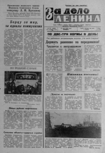 2 i i i n i i i i i i i i i i i i i i i i i i i i t i i t i i i i i in t i i i i i i l l i i l l i i i i i i i i i i i i i i i i i in i i i i i i i i i i i i i i i i i i i i r З А Д Е Л О Л Е Н И Н А ii il lll lll lll lll ll illi ill lli lii iii iiM iiiiii 13 мая 1976 года < № 58 Так служат наши земляки Д м и т р и й Р ы ж о в В ЧЕСТЬ 7 мая с. г. в районном Доме культуры состоялось торжественное заседание районного комитета КПСС и районного Совета депутатов трудящихся с участием предста вителей профсоюз-i ных, комсомольских* и других общественных организаций, посвященное 31-й годовщине победы советского народа в Великой Отечественной войне. С докладом выступил райвоенком Л. К. Роенко. Докладчик HJ ярких примерах показал, к ак рабочие, колхозники, интеллигенция' Новосибирской области и Северного района самоотверженно трудились на з а водах и в колхозах , со зд ав а я все необходимое для фронта, »ак тысячи лучших сынов и дочерей сраж ались с гитлеровскими полчищаПРАЗДНИКА ми. Многие погибли в жестоких боях з а Родину, но многие и вернулись домой, награжденные орденами и медалями за ратные подвиги. В конце доклада тов. Роенко произносит здравицу в честь Советских Вооруженных Сил, в честь советского народа-победителя, в честь Коммунистической партии — руководителя и организатора Великой Победы. Здравицы встречаютс я дружными аплодисмента- *ми всего зала. Для участников торжественного заседания был дан концерт художественной самодеятельности. * * * Торжественные собрания трудящихся, посвященные Дню Победы, состоялись во всех селах района. ПОБЕДЫ 9 мая в районном центре в сквере героев гражданской и Великой Отечественной войн состоялся митинг трудящихся. Митинг открыл первый секретарь Северного райкома КПСС И. Ф. Денисов. ЗМт$гм слово было предоставлено участнику Великой Отечественной войны И. Н. Маевскому. На митинге также выступили: призывник Юрий Приемников, уходящий в этот день на службу, ученица Северной средней школы Оля Никитина, райвоенком Л. К. Роенко. I Митинг закончился возложением венков к памятникам. На снимке: митинг т ру дящихся райцентра. В Северной средней школе учился Дмитрий Рыжов. А потом парня призвали на действительную военную службу. В Армии он зарекомендовал себя очень хорошо. Вот что сообщают о нем командир части и его замполит: «За время прохождения службы в войсковой части водитель рядовой Рыжов Д. М. зарекомендовал- себя дисциплинированным, исполнительным и трудолюбивым воином. Со старанием и настойчивостью овладевает воинским мастерством, отлично знает вверенную ему боевую технику и оружие». Далее сообщается, что Дмитрий Рыжов дорожит дружбой и Войсковым товариществом, словом и делом помогает своим товарищам по службе, поэтому пользуется авторитетом и ува жением. За высокие показатели в боевой и политической подго- товке^ примерную воинскую дисциплину и безупречную службу неоднократно поощрен командирами. Дмитрий активный и в общественной работе, принимает участие в проведении массовых -мероприятий. Молодец, Дмитрий Рыжов! Же- яаем тебе дальнейших успехов в воинской службе. Идет последняя школьн а я четверть. Большинство ребят уже предвкушают близость каникул. А у восьмиклассников и десятиклассников самое ^страдное время — впереди э к з ам е ны. Готовиться к ним трудно: как-никак позади целый учебный год, ск азыв ается усталость. Но готовиться к ним нужно, при этом обдум а н н а планомерно, заблаговременно. Наши советы