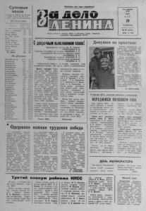 Биаза благоустраивается По вопросу благоустройства состоялось заседание исполкома Биазинского сельсовета, па котором было при н я то решение — депутатам по своим округам провести разъяснительную работу с населением. Решение выполняется. Силами молодежи, работниками Дома культуры произведены посадки деревьев в деревне Беселой на территории клуба, на территории Дома кул ь туры в Биазе. на территории АТС, средней и спецшколы. Грейдируется . дорога, в н у ж н ы х местах подсыпается. Намет аетс я построить мост через овраг с улицы Ц е н т ральной на улицу Зеленую, прочистить водосточные т р у бы у ранее построенных мостов. Н а ш е село — нам его и у к р а ш а т ь . Хочется отметить особенно конец улицы Ц е н тральной (в сторону Кордон а ) : чистая улица, с красиво. Культурно-бытовая комиссия Ново-Троицкого сельского Совета провела рейд по селу Ново -Троицк. Было проверено состояние благоустройства. Оказалось, что большинство жителей к уборке своей улицы, своих усадеб не приступили . На улицах и возле домов можно видеть бревна, дрова, навоз, сено, мусор. Многие еще не подкрасили, « Н а седьмом небе». Греческий философ Аристотель в своем сочинении «О небе» писал, что небесный свод состоит из семи кристально прозрачных сфер, на которых закреплены звезды и планеты. Седьмое небо — высшее. Взгляды Аристотеля, еыгравотстроенными домами и а к к у ратно огороженными палисадниками. Самое приятное впечатление, в частности, производят усадьбы Е. Каргаполо- ва и М. Савастеева — садики ухожены, клумбы в полном цвету, сейчас цветут зимние фиалки, а позднее, к лету, появятся яркие краски астр, гвоздик и других цветов. Это делает честь хозяйкам — это их руки украшаю т свой дом не только для себя, но и для каждого, любящего красоту. Хорошо выглядит улица Школьная. Она достаточно шир о кая , ирогрейдированиая, около всех домов палисадник и , наведен порядок возле дворов. Чтобы все население было заинтересовано в наведении чистоты, порядка на селе,— неустанно работает депутатская гр уппа . В частности, много проявляет заботы по этому вопросу депутат Потапов I I. Л. и другие товарищи. Е. ХАРИТОНОВА. не побелили оградки палисадников, некоторые не посадили деревца — красу улиц и домов. Некоторым жителям села комиссия установила сроки наведения порядка на усадьбах. 1 0 июня вместе с другими депутатами (по о кр у га м ) решено повторить рейд по благоустройству села. В. ПЕТУХОВА. т а к говорим шие свою определенную роль в познании мира, стали достоянием истории развития человеческой мысли. А выражение «на седьмом небе» осталось по сей день. Оно означает высшую степень радости, блаженства, счастья. ю . ДЫМОВ. «В химической и нефтехимической промышленности увеличить производство продукции на 60 — 65 процентов». Так говорится в «Основных направлениях развития народного хозяйства СССР на 1976 — 1980 годы». По всей стране проводится сплошной учет посевов в личных подсобных хозяйствах населения. Учитываются посевы на приусадебных участках колхозников, рабочих и служащих, а также посевы на огородах. земли под которые выделяются местными комитетами профсоюзов. Подобный учет проводился в последний раз в 1964 году. С тех пор прошло 12 лет, Срок немалый. Многое изменилось за эти годы: на месте частных домов построены новые многоэтажные дома, промышленные предприятия очаги культуры. Значит, не с