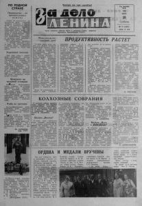 1 9 июня 1 9 7 6 года № 74 uiiuiIIIIIIIIIIIIIIIIIIIIIIIIIIIIIIIIIHII ЗА Д Е Л О ЛЕНИНА j i u i i i i i i i i i i i i i i i i i i i i U H i i i i i i i i i M i i u i i i i i M i i n i i i i i i i M i i i i i i i i i i i i i i i i i i u i i n i i n i 3 Накануне сенокосной страды С сессии Б и а зи н ск о го с е л ь с к о г о Совета С о с т о я л а с ь седьмая с е ссия Биазинского с е л ь с к о г о Совета депутатов т р у д я щихся. Сессия о б с у ди л а меры по заго товке кормов д л я общественного животноводства. С докладом вы ступи л главный агроном к о л х о за « П у т ь к к о м м у н и з м у » М. Д. Ковшар. — Наше х о з я й с т в о .— г о ворит д окла дчи к ,— м о л о ч но-мясного направления, то есть б о л е е д в ух т ре тьих в с т р уктуре товарной пр одукции занимает продукция животноводства. О бщая числ енно с ть кр упного рогатого скота на конец 1976 года составит ок о л о трех тысяч голов, в том числе 900 ковров, Ч т обы повысить продуктивность животных, качество продукции, необходимо бе з опозданий присту пить к созданию прочной кормовой базы. В т ек ущ е м год у перед тружениками ко лх о за поставлена задача — заго товить кормов на 20 процентов б о л ьш е планового. С о гла сно плану пр едстоит заго товить 41 7 3 5 центнеров кормовых единиц. Д л я производства такого количества кормов в к о л хозе посеяны си ло сн ы е к у л ь т у р ы на площади 733 гектара, 214 гектаров однол е тн и х трав, о к о л о 120 — мШ г о л е тни к о в п р ош лых лет. Естественных сенокосов вблизи центральной уса д ьбы нет. П о э т о м у с е нозаготовку будем вести в районе Потюканово. На этих сенокосах хозяй ство в прошлом за г о т а в л и в а л о до 30 тысяч центнеров сена при недостаточной механизации, а й по следние годы всего по 6 — 7 тысяч центнеров. почГи при полной м еханизации. Р е з е р в ы производства есть. Н уж но специалистам к о лх о за , руководит елям среднего звена, всем труженикам приложить максимум уси лий д ля вы полн ения поставленной задачи. Д л я выполнения всего объ е м а работ в х озяйстве в достаточном количес тве имеются машины и механизмы, за исключением копнителей- подборщиков и толкающих волокуш. Д а л е е докладчик и выступающие С. С. Иванов, А . Е. А к а т ь ев , М. Василь- цов остановились на вопросах ремонта кормозаготовительн ой техники. П одго тов ка ее началась , но идет медленно. Причиной я в л я ется не т о л ь к о от сутствие запасных частей, но и низкая ор ганизация т р у д а в мастерской. В плачевном состоянии тракторные т е лежки , который по тре буются при доставке кормов к местам зимовки скота. И з имеющихся 18 т е л е ж е к е д ва л и наберется го дных 5 — 6 штук. В своих йыс туп лениях руководите ли бригад отм е тили, что б у д у т у к ом п л е к т о ваны два мехакизированных звена на заготовке, со зд а ны у с л о в и я д л я работы и отдыха механизаторов на д альних сенокосах. К 20 июня б у д е т закончен ремонт техники. Д епутаты П. М. Тр епова, 3. Харитонова г о в о р и л и ,ч т о в бл ижайшее Время необходимо приступить к заго тов ке лекарственных трав, веточн ого корма, витаминного сена д л я молодняка. Д ок лад чи к и . выступающие о бр ат и л и внимание присутствующий на вопросы сдабривания кбрмов химическими добавками. В с е г о в прениях вы сту пило 10 человек. Сессия приняла соотв етс тв ующ ее решение. Животновод Iаисия Сабкало ва В порядке обмена опытом •Поощрение передовиков на з а г о т о в к е к орм о в П р ав ление и профком к о л х о за « В о с х о д » придают б о л ьш о е значение поощрениям передовиков производства. На основ