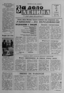 100 м и л л и о н о в п о д п и с е й - и о д новым Стокгольмским в о з з в а н и е м В нашей стране, по предварительным данным Советского Комитета Защиты мира, под новым Стокгольмским воззванием подписалось около с т а ' миллионов граждан. В яркую демонстрацию воли и решимости нашего народа отстоять мир выливаются многолюдные митинги и собрания в поддержку нового Стокгольмского воззвания. На митингах и собраниях выступило несколько миллионов человек. Они единодушно одобряют миролюбивую ленинскую внешнюю политику КПСС и Советского государства, выработанную XXV съездом партии программу дальнейшей борьбы за мир и международное сотрудничество, з а свободу и независимость народов, приветствуют итоги состоявшейся в Берлине конференции коммунистических и рабочих партий Европы, горячо одобряют положения и выводы, содержащиеся в речи на конференции главы делегации КПСС Генерального секретаря ЦК КПСС товарища Л. И. Брежнева. Сбор подписей под новым Стокгольмским воззванием продолжается. (ТАСС). Кадры для села Молдавская ССР. Кагуль- ский гидромелиоративный совхоз-техникум готовит гидротехников, техников-землеустроите- лей, агрономов - овощеводов. Созданы все условия для того, чтобы учащиеся получали прочные теоретические знания и практические навыки. Боле е трехсот выпускников техникума в этом году пополнят ряды специалистов сельского^ хозяйства республики. На снимке: учащиеся (слева направо) С. Гусликов, Е. Карп, Л. Кащ еева и И. Сакалы у макетов сооружений,— которые в этом пятилетии будут возведены в поселках мелиораторов. Ы звилистая проселочная м дорога уходит все даль ше и дальше на сенокосные угодья колхоза «Борьба за мир». Куда ни глянешь, повсюду высокие стройные березы и лишь изредка они отступают от дороги, открываются небольшие поляны да болота. Тихо. Ни один лист не шелохнется. Мы уже проехали добрую половину пути. И вдруг, неожиданно, на повороте, увидели большой выводок глухарей. Они спокойно и доверчиво уступив нам дорогу, проводили взмахами еще неокрепших крыльев. Так под впечатлением увиденного незаметно подъехали к большому полю. Здесь работает звено остяцких м еханизаторов,— сказал секре тарь партийной Орган Северного райкома КПСС и районного Совета — депутатов трудящихся Новосибирской области Год нздажвя 41-й 1976 ИЮЛЬ 17 Суббота № 8 6 ( 4 4 3 6 ) Цена 2 коп. Колхоз имени М а к с им а Горького выполнил план скирдования сена Р А В Н Е Н И Е — НА ПОЗДРАВЛЕНИЯ С ПОБЕДОЙ П Е Р Е Д О В И К О В ! Дневник сенозаготовки Председателю колхоза им. М. Горького В И Н О Г Р А Д О В У И. Д. Секретарю партийной организации А Л Е Н С К О М У Г. Е. Председателю Федоровского сельского Совета К А Л М Ы К О В У Н. Н. Председателю профкома П А Н А Р И Н У Н. А. Секретарю комсомольской организации А Р Х И П О В У И. А. Специалистам, механизаторам, всем труженикам колхоза, занятым на заготовке кормов Дорогие товарищи! - Районный комитет КПСС и исполком районного Совета депутатов Мы выражаем сердечную благодарность коллективу механизаторов Сургутовской бриНа 13 июля колхозами района сена застоговано 3 9 ,3 тыс. центнеров, что больше на 11,8 тыс. центнеров, чем было на это же время в 1975 году. План выполнен на 29,7 процента. . Впереди колхоз им. Максима Горького, где прирост за минувшую неделю составил около 54 процентов к плану. По 1 9 —2 0 процентов дали прирост колхозы «Память Ленина», 