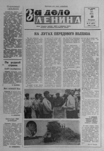 П р о л е т а р и и всех с тр а н , соединяйтесь ! О л и м п и а д а o m k p b im a М О Н Р Е А Л Ь . (ТАСС ) . 17 июля з д е с ь сос тоялось открытие XX I Олимпийских игр. Звук фанфар по традиции послужил сигналом к торжественному маршу делегаций, который, как всегда, открыли представители родины Олимпийских игр — Греции. Советская команда — одна из крупнейших на нынешней Олимпиаде . В ее составе — лучшие из лучших спортсменов страны. После завершения торжественного парада делегаций к олимпийцам с приветствием обратился президент Международного Олимпийского комитета лорд Килланин. Затем английская королева Елизавета II, являющаяся формально главой Канадского государства, объявила от открытии XXI летних Олимпийских игр. Под гром орудийного салюта на беговой дорожке появляются двое: факел несут юноша и девушка, впервые за 80-лет- нюю историю летних олимпиад представители «сильного» и «слабого» полов разделили честь зажжения Олимпийского огня. Проходят считанные мгновения, и в овальной чаше вспыхивает огонь XXI Олимпиады. Поднятый специальным устройством на 50-метровую высоту, он будет светить словно маяк для спортсменов все 16 олимпийских дней. П о р о д н о й с т р а н е Х л е б— - государству Кишинев. Хлеборобы колхоз а имени Киров а К р и у л я н с ко го район а еж егодно вы р ащ и в аю т вы сокие у р о ж а и пшеницы. И нынче с к аж д о го г е к т а р а собирают по со р о к и более ц е н тн е р ов з е р н а . К о лхоз п е р вы м в район е вы по л нил о б я з а т е л ь с т в а по п р о д аж е з е р н а го с уд ар с т ву . В ы в о з к а х л е б а н а п ри ем ны е п ун к т ы п р о д о л ж а е т с я . Н. МАРФИН. Весь световой день 0 Владимир. В области ш ири тс я с о р е в н о в а н и е кормозаготови- т ел ей . В п ер еди м е х а н и з а т о р ы С у з д а л ь с к о г о , Собинского и М уромского ра йонов. В С у з д а л ь ск о м р айон е , н ап ри м е р , к ру гл о с у точ н о дейст вую т все а г р е г а т ы по приготовлению тр а в я н о й муки . В к о л х о з а х имени К ал и н и н а и « З а р я ком м у н и зм а » при го то вл ены сотни тонн ценного вит аминного к о р ма. В Собинском р айон е высокой п р о и зв оди т ел ьн о сти труд а добились т р у ж е н и к и со вхо за « В о рш а н с к и й » . Д в а м е х а н и з и ро ванно - т р а н с п о р тн ы х о тр я д а , ко т оры м и р у ко в оди т В. К. Я к у шев и В. А. Степанов, з а н я т ы в поле в е с ь световой день . В. ИЛЬИЧЕВ. О р и е н т и р —5 0 0 ц е н т н е р о в Краснодар. Доб ры й у р о ж а й ож и д а е т с я на с в е к л о в и ч н ы х пол я х Кубани , з а н и м а ю щ и х 3 1 5 ты с я ч г е к т а р о в . Повсеместно с в о е в р ем е н н о п р о в е д е ны про в е р к а р а с т е н и й в р я д а х , проп о л к а и о б р а б о т к а против в р е ди те л е й . Ш и р о к о и с п о л ь з ую т с я в ны н еш н ем году биологичес ки е м етоды з а щ и т ы с в е к л ы . Сейчас н а п о л я х к р а я н а ч а л с я и н тен сив ный ро ст корн ей . С в е к л о во д ы борют ся з а п о л у чение 3 0 0 - ц е н т н е р о в о г о у р о ж а я . А 4 7 б ри г а д и з в е н ь е в , в о з д е л ы в аю щ и х с в е к л у н а площ а д и 6 . 1 3 5 г е к т а р о в , о б я з а л и с ь н а к о п а т ь с к аж д о го г е к т а р а не м ен е е 5 0 0 ц е н т н е р о в с л ад к и х корней . Орган Северного райкома КПСС и районного Совета депутатов трудящихся Новосибирской области Гвд издавая 41-й 1976 И Ю Л Ь 20 Вторник № 8 7 (4 4 3 7) Ц е н а 2 коп. Н А Л У Г А Х ПЕРЕДОВОГО К О Л Х О З А Как уже сообщалось, колхоз имени М. Горького первым в районе выполнил план скирдования сена. Что способствовало успешной работе? Прежде