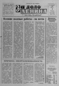 2 ..................................... .1! 1111111111111II!11 I I11111111 i 111111111111111111111n 111! З Л Д Е Л О Л Е Н И Н А i i i i i i i i i i i i i i i i i n i i i i i i t i i i i i i t n n i f i n i : 5 авгу ста 1 9 7 6 года ф № 9 4 ПОСТОЯННО ПОВЫШАТЬ ИНИЦИАТИВУ КОММУНИСТОВ С пленума районного комитета КПСС Как уже сообщалось, 29 июля с. г. состоялся IV пленум районного комитета КПСС. Пленум обсудил задачи партийных организаций по повышению ответственности коммунистов в свете решений XXV сгезда КПС . С докладом по этому вопросу выступил второй секретарь райкома партии Н. А. Борисов. — Советские люди,— говорит докладчик,— отвечают на решения XXV съезда КПСС высокими примерами коммунистического труда. Рост творческой инициативы трудящихся — это тот фундамент, на который опирается партия в своей работе. Она исходит из указаний В. И. Ленина о том, что духу социализма «чужд казенно - бюрократический автоматизм; социализм живой, творческий, есть создание самих народных масс». Чтобы претворить в жизнь намеченные партией планы, требуется и дальше развивать социалистическое соревнование, повышать его действенность, результативность. Необходимо так вести организаторскую и политическую работу, чтобы каждый труженик изо дня в день увеличивал свой вклад в общее дело, давал продукцию только высокого качества, боролся за экономию времени, труда, материалов. Рост масштабов и сложность задач коммунистического строительства, выдвинутых XXV съездом КПСС, требуют, чтобы все партийные организации, все коммунисты работали более активно и целеустремленно, проявляли творческую инициативу. В этом отношении можно привести партийную организацию колхоза имени Максима Горького. Здесь большинство коммунистов находятся на самых ответственных участках производства — механизаторы, работники животноводства, руководители бригад и т. д. Ведь не случайно, что колхоз досрочно выполнил полугодовой план поставок государству молока и мяса. На время заготовок кормов здесь созданы механизированные звенья, их возглавили коммунисты; на ряде основных механизмов работают тоже члены партии. Они сами работают, не покладая рук, и хорошо организовали труд всех членов звеньев. В результате колхоз уже на 14 июля выполнил план заготовок сена и продолжает эту работу также успешно. Собрания проходят регулярно в большинстве первичных парторганизаций района. При этом активность коммунистов серьезно повысилась. Так, в 1 97 5 году на партсобраниях выступило 45 процентов коммунистов, присутствующих на собраниях. Это — средний показатель. Однако в некоторых парторганизациях, как, например, колхоза «Заветы Ильича», выступило только 17 процентов от присутствующих на собраниях. В повышении роли и ответственности коммунистов за порученное дело много значит своевременно заметить отклонения от уставных требований. Можно привести пример действий парткома колхоза «Путь к коммунизму». Здесь нарушители дисциплины постоянно находя!Ся в поле зрения парткома и в целом партийной организации. Так, члены КПСС тт. Макаров, Козлов и Баталов допускали отклонения от требований Устава партии. Партком обсудил их поведение, указал на их нарушения партийной дисциплины, призвал к ответственности. Сейчас эти коммунисты добросовестно трудятся, активно участвуют в партийной и хозяйственной жизни колхоза. В воспитании у коммунистов ответственности за общее дело много значат парти