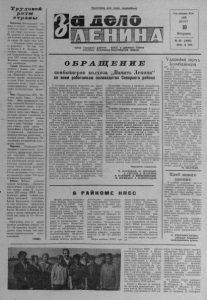 Пролетарии всех стран, соединяйтесь! Т р у д о в о м р т т ш с т р а н ы Волгоград. Волгоградские шоферы 5 августа доставили на элеваторы области самое большое за всю страду количество зерна. По трудным от проливных дождей полевым дорогам они перевезли свыше 80 тысяч тонн хлеба. Ускорение ритма уборочного конвейера — это наш ответ на Письмо Л. И. Брежнева ростовским шоферам,— сказал Герой Социалистического Труда, делегат XXV съезда партии Ф. А. Мартынов, возглавляющий бригаду автопоездов. Гу рьев (Казахская ССР). Миллионную с начала года тонну нефти добыл коллектив управления «Жаикнефть». Этот рубеж достигнут раньше запланированного срока. Успех обеспечен за счет досрочного ввода в строй новых эксплуатационных скважин, а также телемеханизации промыслов. Яван (Таджикская ССР). Железная дорога Термез — Курган- Тюбе — Яван перешагнула границу целинной Яванской долины. Здесь завершена сборка первого пролета стометрового железнодорожного моста через Явансу. Это последнее крупное сооружение на строительстве дороги, которая пролегла через сыпучие пески, горы и реки. Стальная магистраль свяжет центр страны с крупнейшим в Средней Азии Южно-таджикским территориальнопроизводственным комплексом, в который входят Нурекская ГЭС, строящийся алюминиевый завод и другие объекты. Марганец (Украинская ССР). Завершено строительство нового крупного предприятия строительной индустрии Приднепровья. Первые десятки кубометров сырья для изготовления легких железобетонных конструкций выдала вторая очередь завода керамзитового гравия, вошедшая в строй. Теперь предприятие будет ежегодно производить свыше '200 тысяч кубометров продукции. Ижевск. Примеру кубанцев следуют труженики Удмуртии, приступившие к косовице и обмолоту озимых хлебов. В колхозе имени XXII съезда КПСС Кара- кулинского района лучший комбайнер автономной республики Виктор Проскуряков подтверждает свое мастерство ежедневным выполнением двух сменных норм. Виктор Шестаков и Николай Ка- лабин и другие скашивают за рабочий день хлеба на 2 5 — 30 гектарах. Земледельцы этого и других хозяйств республики решили на 1 5 — 2 0 процентов продать государству зерна больше, чем намечалось первоначальными обязательствами. (ТА С С ) . ч Орган Северного райкома КПСС и районного Совета депутатов трудящихся Новосибирской области Год издания 42-й 1976 АВГУСТ 10 Вторник № 9 6 ( 4 4 4 6 ) Цена 2 коп. О Б Р Л Щ Е Н И Е комбайнеров к ол хо за „Память Ленина" ко всем работникам полеводства Северного района С большим подъемом встретили мы, з е м л е дельцы колхоза «Память Ленина», приветствие Генерального секр е та р я ЦК КПСС товарища Л. И. Б р еж н е в а трудящимся К р аснодарского края . Благородный пример кубанских хлеборобов нашел горячий отклик в нашем коллективе. В ответ на постановление ЦК КПСС и Совета Министров СССР «О дополни тел ьных - мерах по обеспечению уборки урожая , заго товки сельскохозяйственных продуктов и кормов в 1976 году», на почин кубанских хлеборобов мы сделаем все от нас зависящее , чтобы своевременно и качественно провести уборку урожая первого года десятой пятилетки. Для нас, земледельцев, наступил решаю щий этап борьбы з а урожай. Мы ясно представляем себе все трудности уборочных работ в этом году. В нынешних условиях потребуется особая собранность, высокая организованность, сноровка и самоотверж
