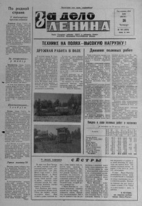 26 августа 1976 года ♦ № 103 uii iii iiiiiiiiiiiiiiiniiiiiiiiiiiiiiiiiiiii З А Д Е Л О Л Е Н И Н А ni i i i i Mni ui i i i i i i i i i i i i i i i i i i i i i i i i i i t i i i i i i i i i i t i i i i i i i i nimi imMHi usmi i i ni i i 3 УРОЖАЯ ЗЕРНОВЫХ И СИЛОСНЫХ КУЛЬТУР НЕ ТОЛЬКО КОРМОВАЯ БАЗА Испытанныз! методом Групповой метод ведения уборки завоевал правц на существование в силу своей экономической и технологической выгоды, в силу более эффективного использования техники и лучшего ее обслуживания. На нынешнюю уборочную кампанию в колхозе вновь созданы механизированные звенья по закладке сенажа и силоса, по уборке зерновых. Примером вновь возьмем первую бригаду колхоза, ибо на остальных труд организован по такому же образцу. Итак, хлеба убирают восемь комбайнов. Они объединены в два звена по четыре агрегата в каждом. За каждым закреплено определенное число автомашин, которые и отвозят зерно на колхозный ток. В звеньях есть по одному штурвальному. Его обязанности коротко можно выразить так: помогать при поломках машин, подменять при случае любого комбайнера. Естественно, штурвальный должен знать комбайн, уметь его не просто водить, а именно работать на нем. Созданы звенья и на уборке силосных. Сейчас на косовице кукурузы работают два комбайна КС-2,6. Один, как говорится, местный, второй — из За- боевской бригады. Им приданы два самосвала и два мощных «Кировца», а также «Беларусь» с прицепной тележкой. За один рейс в общей сложности они вывозят 25 — 27 тонн силосной массы. Создано два звена йо обслуживанию те хники.' «Летучки» имеют сварочный агрегат. Два человека — шофер и слесарь (впрочем разграничение это чисто условное, ибо они же и токари, и сварщики и т. п.) могут быстро устранить неисправности у машин в поле. А т е п е р ь о л ю д я х Каждая сельскохозяйственная кампания требует от механизаторов большого напряжения сил. Любому из них понятно, насколько важно, чтобы техника работала безотказно, чтобы в тот короткий срок, который отведен Природой для проведения, скажем, сева или хлебоуборки, было сделано все возможное, чтобы был выращен и убран урожай. Борьба за него начинается не только с тщательной подготовки машин и механизмов, но и с подготовки людей к предстоящей страде. • Перед началом уборки урожая зерновых и силосных культур механизаторы колхоза «Память Ленина» собрались на совет. Итогов серьезного разговора стало Обращение ко всем земледельцам района, опубликованное в газете «За дело’ Ленина» 10 августа с. г. На этом же собрании были приняты личные социалистические обязательства (их принимал каждый тракторист, шофер, комбайнер), обязательства бригад и звеньев. Создавая звенья, здесь стремились к тому, чтобы их возглавили коммунисты. В Больших Куликах, например, звеньевыми определены коммунисты В. А. Чикунов и М. И. Бессонов, в Забоевке — И. И. Ковя- зин, в звене по уборке силосных в Верх-Красноярской бри* гаде А. Н. Сметанин. Работает он на «Кировце», отвозит от комбайнов массу и, естественно, в курсе дел и на бурту, и на поле. А это многое значит. На зерноочистительно-сушильном пункте трудится молодежь. Здесь руководит всем делом секретарь комсомольской организации Михаил Под- жунас. В горячие дни хлебоуборки важно; чтобы каждый, кто сел за руль автомашины или комбайна, за рычаги трактора, нашел свое место в едином строго. Здесь нужна каждая пара рук. И как факт отрадный — рядом с такими опытными мастерами, как И. И.