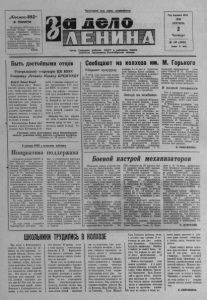 „ К о с м о с - 8 5 2 “ в п о л е т е 2 8 а в гу ста 1 9 7 6 го д а в С о ве т ск ом С о ю з е произведен зап уск о ч е р е дн о г о и с к у с с т венного спутника Земли « К о с м о с - 8 5 2 » . На б о р т у спутника у с т а новлена научная аппаратура, предназначенная для продолжения исслед ований к о с ми че ск о г о п р о с т р а н с т в а . ' Т А С С П р о л е т а р и и всех стран , соедин яйте сь! Орган С е в е р н о г о рай к ома К П С С и рай онн ого Совета д е п у т а то в т р у д я щ и х с я Н о в о с и б и р с к о й о бл асти Г о д издания 4 2 -й 1976 С Е Н Т Я Б Р Ь 2 Ч е т в е р г М 106 (4456) Цена 2 к о я . Быть достойными отцов Генеральному секретарю ЦК КПСС Товарищу Л е о н а д у Ильичу БРЕЖНЕВУ Дорогой Леонид Ильич! Выпускники школ Новосибирской области собрались на слет, чтобы выразить свое горячее стремление трудиться в родных колхозах и совхозах. Мы хотим внести свой вклад в общенародное дело строительства коммунизма. Только в этом году тысячи юношей и девушек, окончивших школы области, остались в селах и с большим желанием трудятся на полях и фермах. Взволнованные Вашим обращением и напутствием к выпускникам школ Костромской области и понимая важность задач, поставленных XXV съездом КПС на десятую пятилетку, мы решили посвятить свой труд дальнейшему подъему экономики и культуры села. Каждый из нас будет стремиться быть достойным героических дел и подвигов наших отцов, матерей, старших братьев и сестер. Заверяем Вас, что отдадим все силы и знания самоотверженному труду во имя процветания нашей великой Родины. Участники сл ета выпускников школ Н о в о си б и р ск ой области , решивших пойти ра б ота ть в с е л ь с к о е х о зя й ст в о ( « П р а в д а » от 29 авуста 1 9 7 6 г. ). В райкоме НПСС и исполкоме райсовета Инициатива поддержана Северный райком КПСС- и исполком райсовета , р а с с м о т рев Письм о выпускников ср е д н и х школ Н ово си б и р ск ой области Г енер альн ому с е к р е т а рю ЦК КПСС тов. Б р е ж неву Л. И., оп убликованное в га з е те « П р а в д а » , полнос т ь ю поддерживают инициативу молодежи пойти п осле окончания школы в с е л ь с к о х о зя й ст в енн о е п рои зводство . Дальнейшее развитие нар о д н о г о хозяйства , п овыш е ние эфф ек ти вн ости ж ивотн о в о дств а и п ол е во д ст ва нев о зм ож н о б е з активного , т в о р ч е с к о г о тру да м олодых. За го д ы девятой пятилетки б о л е е 1 2 0 выпускников средних школ нашего рай о на о ст ал и сь р а б о та ть в р о д ных к о л хо з а х , поступили и закончили с е л ь с к о х о з я й с т венные у чебны е заведения. С егодня в селах района р а б о та е т 3 9 выпускников 1 9 7 6 года. За го ды у ч е бы у ч ащ и е ся п р и обретаю т прочны е знания, в ученических бригадах проходя т п е р в ую ш к олу т р у довой закалки и воспитания вы сок ой от в е т с тв ен н о с ти за п орученн ое дело, получают проф ессиональные навыки на ’ полях и ф ерм ах к о л х о з о в района. Наглядный пример т о м у — организация п р о ф ориентации в В ерх -К р а сн о - ярекой средней школе, где еж егодн о с о з д а ю т с я у чени че ские п рои зв одствен ны е бр игады. Учащ иеся сами о б р а батывают у частки п осевов , выращивают и у б и р а ю т у р о жай. * Райком КПСС и райисполком р е к о м е н д у ю т первичным партийным организациям, рай к ому ВЛ КСМ , и сп о л к о мам с е л ь ски х С о ве т о в шир о к о о б с у д и т ь инициативу выпускников Н ов о си б и р ск ой области , принять н е о б х о д и мы е м е р ы по дальнейшему закреплению молодежи на селе, с о з д а