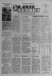 2 Минин..... нм.... . ЗА ДЕЛО ЛЕНИНА i i i i i i i n i l l i i l i i i i i i i i i r i i i i i i i i i i i H i i i i i i 4 сентября 1 9 7 6 года + Ns 1 0 7 ОТРЯД „ЗВЕЗДНЫЙ" НА УБОРКЕ «Молодцы, ребята. Умеют работать» — таков отзыв руководителей колхоза «Заветы Ильича» о посланцах города Новосибирска, прибывших сюда на период уборочной страды. Отряд «Звездный» сформирован одним из Новосибирских институтов в помощь колхозам нашего района. В его составе 15 человек и каждый из них имеет конкретные поручения, обязанности. Преобразился дом, в котором поселились парни и девушки — на столах цветы, на стене — графики работы, рядом — стенгазета, над которой «колдует» редактор Николай Буяков. Первое наше знакомство с комиссаром отряда Аллой Ивановой произошло на зерносушильном комплексе. Алла рассказывает: — Все операции по переработке зерна мы выполняем сами. Но наше пребывание в колхозе не ограничивается только деловыми с ним отношениями. Мы входим в тесный контакт с местной комсомольской организацией. Уже провели совместное заседание с комитетом, наметили ряд мероприятий, например, оформление ленинской комнаты, рейды «Комсомольского прожектора», концерт художественной самодеятельности. Я уже второй раз приезжаю на уборку урожая. Кстати, попасть в отряд тоже непросто. Нужно пройти своеобразный конкурс. Здесь же сразу широко развернули социалистическое соревнование. Ребята подобрались дружные и работящие, поэтому для нас не существует вопроса о трудовой дисциплине. Нужно отдать должное и повару Людмиле Куликовой, от которой в значительной мере зависит наша работоспособность. Усталость, конечно, существует, но что значит усталость по сравнению с'чувством твоей причастности к будущей судьбе хлеба. И даже теплый запах созревших зерен имеет свою чудодейственную силу, он исцеляет от усталости, делает человека мягче, добрее. Одним словом, в колхоз приехали настоящие помощники и хочется пожелать им до конца уборочной страды работать так же слаженно и ритмично, как они делают это сейчас. 0 . С А М У Ш К И Н А . Д В О Е И З Б О Л ЬШ О Й СЕМЬИ Живет в нашем селе женщина, о которой хочется рассказать какими-то особыми словами. В Федоровке ее все зовут по-простому Федосьей Громовой. Так ее знает и стар, и млад. Трудная у нее сложилась жизнь. Шестерых детей имела, без мужа растила. Потом нашелся хороший человек. Еще в.семье двое ребятишек появилось. Неплохо жили. Дружно, да счастье недолгим оказалось: муж скончался. Восемь детей на руках — не шутка. Любому известно, что это значит. Но как бы там ни было, а повырастали сыновья и дочки. Обрадовали ее внуками да внучками — целый десяток их у Федосьи Громовой. Сама-то она и добрая, и отзывчивая, и трудолюбивая. Этому и детей своих учила. Да и теперь учит: рада помочь каждому, в любую минуту придет, пособит, подскажет. Любят ее дети, любит и она их. О л ю д я х х о р о ш и х Сейчас только четверо при ней остались. Два сына л две дочки свои семьи имеют. Снохи чуть что — к ней идут. Со стороны даже и не подумаешь, что она им не мать, а свекровь. Здесь же, у нас, работает один из ее сыновей, Василий Громов. Он и шофер, и тракторист. Одним словом, механизатор. Нужной для колхоза профессии человек. Двадцать шесть лет ему. Семью имеет, дочка растет. В селе о нем только и услышишь: «Хороший тракторист, хороший семьянин». Зря люди ничего не скажут. Правда, Василий работает трактористом 
