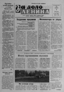 П а р т и й н о х о з я й с т в е н н ы й а к т и в Казахстана А Л М А -А ТА . ( Т А С С ). 3 сентября здесь состоялось совещание партийно - хозяйственного актива Казахс тана . С большой сердечностью, бурными, продолжительными аплодисментами встретили у ча стники совещания Генерального секретаря Ц К КПСС товарища Л. >1. Брежнева. Открыл совещание член Политбюро Ц К КПСС, первый секретарь Ц К К П Казахс тана Д. А. К уна ев . Он доложил о ходе выполнения трудящимися республики решений X X V съезда КПСС, плана и социалистических обязательств на 1 9 7 6 год. С речью на совещании выступил встреченный бурной, продолжительной овацией Генеральный секретарь Ц К КПСС товарищ Л. И. Брежнев. Речь товарища Л . И. Брежнева была выслушана с огромным вниманием и неоднократно прерывалась продолжительными аплодисментами. Заключительные слова речи у ч а с т н и к и совещания встретили стоя, бурной овацией. На совещании выступили первые секретари ряда обкомов компартии К азахстана. Партийно - хозяйственный а к тив республики единодушно при нял постановление. В нем подчеркивается, что важнейшей задачей коммунистов и всех трудящихся республики в области сельскохозяйственного производства является полное использование внутр енних резервов и возможностей каждого хозяйства с тем, чтобы организованно, в сжатые сроки и без потерь провести уборку урожая и засыпать в закрома Родины не менее одного миллиарда 1 0 0 миллионов пудов казахстанско го хлеба. Совещание партийно - хо зяйст венного акт ив а заверило Лен и н ский Центральный Комитет, Политбюро Ц К КПСС и лично Генерального секретаря Ц К НПСС то варища Л . И. Брежнева в том, что коммунисты, трудящиеся К а захской ССР сделают все для у с пешного выполнения планов и социалистических обязательств 1 9 7 6 года, внесут свой достойный вклад в осуществление исторических решений X X V съезда игн»г» • Награды героям космоса П р е зидиум Верховного Сов ета С С С Р з а ус пешное о с ущ е ст вление д л и тел ьно го п о л ета на орби тальной н аучной станции «Союз-5» и тр ан спор тном ко р а б л е «Сою з -21» и п ро явл енно е при этом м уж ест во и герои зм н а г р а д и л Г еро я Советского Союза л етч и к а -ко см о н ав т а СС С Р Волынова Б о р и с а В а л е н ти н о в и ча орденом Ленин а и второй м е д алью « З о л о т а я З в е з д а » . Л ет чи к у -ко см он а в ту Ж о л об о ву Ви т алию М ихайловичу присвоено зв а н и е Г ероя Советского Союза с вруч ени ем о р д е н а Л ен и на и м ед а л и « З о л о т а я З в е з д а » . Он удостоен т а к ж е з в а н и я «летчик-космонавт ССС Р » . (ТАСС) Пролетарии всех стран, соединяйтесь! Орган Северного райкома КПСС и районного Совета депутатов трудящихся Новосибирской области Год издания 42-й 1976 СЕНТЯБРЬ 7 Вторник № . 108 (4 4 58) Цена 2 кои. Поздравление передовикам Председателю колхоза им. М. Горького ВИНОГРАДОВУ И. Д. Секретарю партийной организации АД ЕНС КОМ У Г. Е. Председателю Федоровского сельского Совета К А Л М Ы К О В У Н . Н . * Председателю профкома колхоза П А Н А Р И Н У Н . А. Секретарю комсомольской организации АР ХИ ПО В У И . А. Специалистам, дояркам, с к о т н и кам , телятницам, всем тр уж е н и к ам колхоза, занятым на работе в животноводстве. Механизаторы на уборке Дорогие товарищи! Рачком КПСС,исполком райсовета и президиум райсовпрофа горячо поздравляют работников животноводства, специалистов, всех тружеников колхоза им. М. Горького с замечательной 