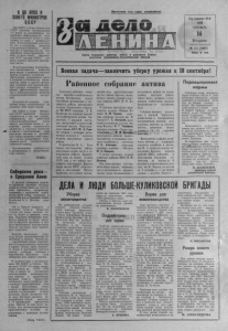 В ЦК КПСС и СОВЕТЕ МИНИСТРОВ С С С Р ЦК КПСС и Совет Министров СССР приняли постановление «О мерах по дальнейшему повышению эффективности сельскохозяйственной науки и укреплении ее связи с производством». В постановлении отмечается, что в ускорении развития сельскохозяйственного произ- * водства и перевода его на современную индустриальную основу в свете задач, выдвинутых XXV съездом КПСС, все более важное значение приобретает наука. В постановлении подчеркивается необходимость повысить роль науки в решении основной задачи сельского хозяйства — обеспечении дальнейшего роста и большей устойчивости производства зерна и другой продукции, создании зон гарантированного урожая, всемерного повышения эффективности земледелия и животноводства, качества сельскохозяйственной продукции. Документом указаны конкретные меры, направленные на решение этих задач науки. ЦК КПСС и Совет Министров СССР выразили твердую уверенность в том, что ученые, специалисты, все работники сельскохозяйственной пауки внесут достойный вклад в ускорение научно - технического прогресса в сельском хозяйстве и вместе с тружениками села обеспечат высокие и устойчивые темпы развития этой отрасли в целях дальнейшего неуклонного роста благосостояния советского народа. Постановление публикуется в центральных и республиканских газетах. (ТАСС). Сибирские р е к и — в Среднюю Азию В десятой пятилетке намечено провести научные исследования и осуществить на этой основе проектные проработки, связанные с проблемой переброски части стока северных и сибирских рек в Среднюю Азию, Казахстан и в бассейн веки Волги. Обь и Енисей направят в Среднюю Азию и Казахстан столько же воды, сколько несет ее Волга в среднем течении. Подобное вторжение человека в природу не имеет аналогов в мировой практике и тр ебует ’тщательного научно-технического изучения всех возможных следствий. Бассейн Аральского моря, куда входят среднеазиатские р еспублики и южный Казахстан, — крупнейший район современного и перспективного орошения в стране. Сейчас здесь орошается более 5 миллионов гектаров земель, площади которых в перспективе, используя воды сибирских рек, можно удвоить. В соответствии с постанявлением ЦК КПСС и Совета Министров СССР «О плане мелиорации зем ел ь на 1 9 7 6 — L980 годы и мерах по улучшению использования мелиорированных земель» в республиках Средней Азии и Казахстане начинается переустройство действующей ирригационной сети с целью обеспечения более полного и эффективного использования и сохранения водных ресурсов. Будет построено около двух десятков крупных водохранилищ общей емкостью 5 —6 миллиардов кубометров воды. Многие из них будут р а ботать как автоматизированные ирригационные системы, управляемые с помощью тел емеханики. Пролетарии всех стран, соединяйтесь! Орган Северного райкома КПСС и районного Совета депутатов трудящихся Новосибирской области Год издания 42-: 1976 СЕНТЯБРЬ 14 Вторник № 111 (4461) Цена 2 коя. Районное собрание актива Состоялось районное собрание партийно-хозяйственного актива. Обсуждались задачи партийной организации и трудящихся района, вытекающие из речи Генерального секретаря ЦК КПСС товарища Л. И. Брежнева на собрании партийно-хозяйственного актива Казахстана. С докладом выступил заведующий сельскохозяйственным отделом Новосибир