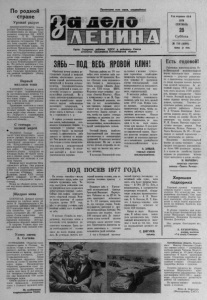 По р о дн ой стране У р ож ай р адуе т ДНЕПРОПЕТРОВСК . Зем л е дельцы Приднепровья, горячо откликнувшись на письмо Генерального секр е таря ЦК КПСС товарища Л. И. Брежнева харьковским свекловодам, решили продать государству 7 50 тысяч тонн сладких корней. Это значительно больше плана. Из колхозов Павлоградского, Цари- чанского, Магдалиновского районов на государственные приемные пункты отправлены первые сотни тонн сахарной свеклы. Отменный урожай ее выращен на полях Новомосковского района. По пятьсот центнеров с гектара собирают здесь в колхозах имени Калинина и имени Горького. Сельские труженики области решили завершить уборку к 10 ноября. Первый миллион тонн ТАШКЕНТ. Сегодня в хлопковые «горы», поднимающиеся на заготовительных пунктах Узбекистана, уложена миллионная тонна сырца. Этот рубеж достигнут на пять дней раньше, чем в прошлом году. Труженики колхозов и совхозов республики, вырастившие богатый урожай, высокими темпами ведут сбор «белого золота». Лидируют в соревновании сборщиков земледел ьцы Ташкентской области. С гектара — полной мерой МАЙКОП. Первые десять тысяч тонн кукурузного зерна нового урожая засыпали в зак рома государства земледел ьцы Адыгейской автономной области. Кукурузоводы с каждым днем наращивают темпы уборочных работ. Обязательство — провести уборку кукурузы на площади более 30 тысяч гектаров в сжатые сроки — успешно выполняют все колхозы и совхозы Адыгеи. Впереди идут хозяйства Шов- геновского района. Они решили засыпать в закрома государств а 9 .5 0 0 тонн кукурузного зерна. В колхозах «Родина», имени Калинина, имени XXII съ езд а ^гШСС собирают по 9 5 — 100 центнеров кукурузного зерна с гектара. Вслед з а уборкой почву готовят под посев озимых колосовых культур. [Щедрая нива КОКЧЕТАВ. Добрый урожай выращен на хлебных нивах области. В Арыкб алыкском и Володарском районах собирают по 22 ,3 центнера зерна на круг, есть хозяйства, где урожайность составляет 2 8 —3 0 центнеров. Сотни скоростных убо^ рочно-транспортных звеньев', применяя передовые методы, добиваются высокой выработки. В з акром а Родины идет второй миллион тонн сильной пшеницы. У с п е х з в е н а А . Сычева К УЙБЫШ ЕВ . Уборочно-тран- с п с р т н с е ’звено А. Сычева из колхоза «Серп и молот» Пест- равского района, вступая в соревнование со звеном знатного ростовского хлебороба, Героя Социалистического Труда Н. Бочкарева, обязалось намолотить за сезон 72 тысячи центнеров зерна. Механизаторы творчески применили опыт передовиков, продуманно организовали свой труд. И вот р е з у л ь тат: четырьмя комбайнами «Нива» они намолотили 100 тысяч центнеров зерна. Обком партии и облисполком тепло поздравили коллектив звена с большой трудовой победой. По сообщениям корреспондентов ТАСС. Год издания 42-й 1 9 7 6 С Е Н Т Я Б Р Ь 25 Суббота № 1 1 6 ( 4 4 6 6 ) - Цена 2 кон. Пролетарки всех стран, соединяйтесь! 2ГЗ«3 г 1 Орган Северного райкома КПСС и районного Совета депутатов трудящихся Новосибирской области ЗЯБЬ-ПОД ВЕСЬ ЯОР ОВ Й КЛИН! Обработка почвы должна регулировать водный и пищевой режимы, обеспечивать уничтожение сорной растительности, вредителей и болезни сельхозкультур, благоприятствовать заделке удобрений и семян, получению всходов и развитию культурных растений. Но в одних почвенно-климатических зонах на первый план выдвигаются задачи мобилизации почвенного плодородия