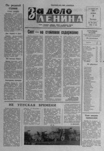 По родной стране У с п е х доярки Ярославль. Доярка опытнопроизводственного хозяйства «Михайловское» Ярославского района Ю. А. Сорокина по примеру передовых животноводов страны ведет борьбу за получение в десятой пятилетке тысячи тонн молока. В первом году пятилетки она в зя ла обязательство надоить не менее четырех тысяч килограммов молока от каждой коровы и успешно его выполняет. З а восемь месяцев Юлия Алексеевн а получила в среднем от коровы по 282 3 килограмма молока. Д в е нормы в день Ташкент. Двухмиллионную твнну сырца приняли сегодня заготовительные пункты от хлопкоробов Узбекистана. Сейчас на хлопковых плантациях работает 25 тысяч комбайнов. Своеобразного рекорда добились земледельцы Ташкентской области: на каждом из 270 0 уборочных агрегатов механизаторы выполняют по две нормы в день. Лидирует механик-водитель С. Усеинов из колхоза имени 40-летия Октября Бунинского района. Он уже выгрузил из бункера своего аг регата 250 тонн сырца — более двух годовых норм. По м е т о д у Героя Иваново. Труженики совхоза «Новоталицкий» с большим интересом ознакомились с обязательствами брянских картофелеводов. Они решили в первом году десятой пятилетки отправить потребителям на 120 тонн клубней больше задания. Широко используя метод своего зем л як а Героя Социалистического Труда В. С. Путятина по комплексной механизации возделывания картофеля, коллектив совхоза возгл авляет областное соревнование по уборке. Быстрыми темпами Тамбов. Первые 10 тысяч тонн сахара выработали предприятия области. Из-за погодных условий уборка и переработка свеклы на Тамбовщине начал ась позднее обычного. Коллективы завода, обсуждая письмо Генерального секр е таря ЦК f КПСС товарища Л. И. Б р еж н е ва харьковчанам, обязались быстрее войти в производственный гр афик и дать до конца года продукции сверх плана не менее 970 тонн. Пролетарии всех стран, соединяйтесь! Орган Северного райкома КПСС и районного Совета депутатов трудящихся Новосибирской области •.од издания 42-а 1 9 7 6 О К Т Я Б Р Ь 7 Ч е тв ер г № 1 2 0 ( 4 4 7 0 ) Цена а коя. Скот — на стойловое содержание Ночные заморозки и наступившее похолодание — предвестники приближающейся суровой сибирской зимы. В наших условиях большую часть молока и мяса животноводы получают в зимнестойловый период содержания скота. В это ж е время проходит основной растел коров. Вот почему очень важно всесторонне подготовиться к зимовке скота, своевременно, организованно перевести его с пастбищного на стойловое содержание. Неплохо провели в прошлом году зимовку и добились самых высоких надоев молока и лучшего содержания поголовья колхозы имени М. Горького, им. К. Маркса и другие. Это — результат хорошей подготовки помещений, полноценного кормления животных и добросовестного ухода за ними. Нынче колхозы района намного больше и качественнее заготовили сена, силоса, зернофуража, заскирдовали с основной площади солому. Это позволит содержать скот на хорошем, сбалансированном рационе. Надо только с первых же дней зимовки экономно, расчетливо расходовать все виды кормов. Ну, а каковы итоги месячника по комплексной подготовке животноводства к з и мовке 1 9 7 6 — 1977 годов? Что сделано для организации стойлового содержания скота, для повышения его продуктивности? Чтобы проверить, уточнить ответы на эти вопросы, были созданы три комиссии. Уд