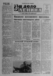 с п о л е й Кустанай. Механизатор совхоза «Карасуяский» П. Бреусов выполнил повышенное социалистическое обязательство. С начала уборки он подобрал валки с 1285 гектаров, намолотив комбайном «Нива» свыше 27 тысяч центнеров хлеба. Это превышает шесть сезонных норм. Закончив уборку в своем хозяйстве, механизатор перебрался в совхоз «Майский», чтобы помочь соседям. Астрахань. На элеваторы Нижнего Поволжья начал поступать рис нового урожая. Специализированные бригады Харабалинского и Камызякско- го районов намолачивают с каждого гектара по 5 0 —60 центнеров риса. Барнаул. Три миллиона гектаров полей вспахали под зябь механизаторы Алтая. Большая часть массивов подработана бе- зотвально — с сохранением стерни. Это позволит зимой закрепить на поверхности снег, защитить почву от ветров. Взмет зяби в крае продолжают 3 тысячи тракторных звеньев. Тула. Специализированной фирмой по выращиванию свекловичных семян, созданной в Ефремовском районе, собран первый урожай. Совхозы «Степиной хутор» и «Медведки», вошедшие в фирму, обеспечили семенами под посев будущего года свекловодов всех хозяйств района. Ташкент. Хозяйства Нижне- чирчикского района первыми в Узбекистане выполнили план машинной уборки хлопка. Достигнута самая высокая в республике дневная выработка — более 11 тонн сырца на агр егат. Механизаторы района наметили убрать машинами 90 процентов всего урожая. Брянск. На картофельных плантациях области самая напряженная пора уборки. На з а готовительные пункты ежедневно поступают тысячи тонн клубней. Первыми в области выполнили обязательства-по продаже картофеля государству зем ледельцы колхоза имени Кирова Суземского района. Они отправили 1.542 тонны «второго хл еба» — на 2 42 тонны больше плана. Хозяйства усиливают продажу картофеля государству. Махачкала. Колхозы и совхозы Дербентского района з а вершили уборку винограда столовых сортов. Всего собрано более 12 тысяч тонн ягод. Горячая пора наступила и на плантациях технических сортов винограда. На приемные пункты винных заводов уже поступило 20 тысяч тонн ягод. Более трех тысяч тонн винограда продал государству совхоз имени Алиева. Здесь с каждого гектара получают по 13 0— 135 центнеров гроздьев. Отличный урожай винограда выращен также в совхозах име.- ни Карла Маркса, имени Ильича и других. Андижан (Узбекская ССР). Колхоз «Правда Востока» Ленинского района первым в Ф ерганской долине рапортовал о выполнении годового плана з а готовок хлопка. Государству продано 7800 тонн «белого зо лота» — на тысячу тонн больше, чем в 1975 году. С к аж дого из 219 5 гектаров получено по 35 центенров сырца. Высоких показателей в хозяйстве добилась бригада Героя Социалистического Труда Кабула Мир- заева. Она сняла с каждого гект ар а по 50 центнеров хлопка. Минск. Подъем зяби на втором миллионе гектаров начали механизаторы Белоруссии. Сроки этих работ нынче предельно сжаты — из-за позднего созревания и уборки всех культур. Техника работает в 2 —3 смены. Земледельцы вывозят на поля органические удобрения. По сообщениям корр. ТАСС, Пролетарии всех стран, соединяйтесь! Орган Северного райкома КПСС н районного Совета депутатов трудящихся Новосибирской области Год издания 42-й 1 9 7 6 О К Т Я Б Р Ь 8 Пятница № 121 ( 4 4 7 1 ) Цена 2 коя. Н а к а н у н е всесоюзного праздника животноводства района Работникам Дорогие товарищи! Выпо