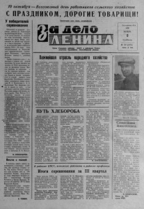 10 октября — Всесоюзный день работников сельского хозяйства С ПРАЗДНИКОМ, ДОРОГИЕ ТОВАРИЩИ! У победителей соревнования Небольшой, но дружный коллектив работает на Томиловской молочнотоварной ферме колхоза «7-й съезд Советов». В основном это люди, посвятившие животноводству всю жизнь. Ферма неоднократно по итогам года выходила в число передовых в районе. А за результаты зимне-стойлового периода 197 5— 76 годов стала победительницей во Всероссийском социалистическом соревновании. Коллективу присуждена Почетная грамота и денежная премия. Хорошо сложились дела у то- миловцев в первом году десятой пятилетки. За девять месяцев они надоили по 2044 килограмма молока на фуражную корову. Причем прибавка по сравнению с тем же периодом прошлого года составила более полутора центнеров. Борьба за молоко складывается из усилий каждого члена коллектива. Своеобразное соревнование установилось между пастухами Ф. А. Доленчуком и А. А. Кропотовым. Они ежедневно следят за надоем по гурту и тем оценивают качество своей работы. Передовая доярка этой фермы, кавалер ордена «Знак Почета» Е. С. Бузюргина надоила за девять месяцев 2437 килограммов молока на фуражную корову. Свое обязательство — получить по 25 центнеров на корову — она выполнит менее чем за 10 месяцев. Хорошие надои получила от своей группы В. А. Васильева — по 2217 килограммов на корову. В целом же ферма с годовым планом производства и продажи молока государству справилась еще на начало сентября. Большая участь продукции сдана первым сортом. Сейчас среднесуточный удой на фуражную корощу составляет 6 килограммов. Коровы получают подкормку. Большое подспорье в этом оказывает турнепс, который дал хороший урожай. На зимовку в Томиловке животноводы -выходят с хорошим запасом кормов. Есть 2200 центнеров сена, заложено в бурты 6380 центнеров зеленой массы подсолнечника, заскирдована солома. В этом немалая заслуга механизаторов и бригадира В. К. Михале- вича. М. АЛЕКСАНДРОВА . В е с т и с п о л е й В колхозах нашего района заканчивается, а некоторые хозяйства уже закончили вспашку зяби. Так, колхоз «Восход» выполнил план вспашки зяби на 166 процентов. Хорошо потрудились на своих «Кировцах» молодые ребята — комсомольцы Валерий Ратников и Виктор Прохоров. Не уступал им водитель ДТ-75 Ефим Васильевич Карпов. Перевыполнен план вспашки зяби в колхозе «7-й съезд Советов». Ударно потрудились в этом хозяйстве трактористы Виктор Савельевич Доленчук, Иван Михайлович Кирюшенко. С. ГОФМАН. Пролетарии в с е х стран , со единяйтесь! Орган С еверного райкома КПСС и районного С овета деп утат ов т р у д ящ и х ся Новосибирской области Г о д издания 42 -й 1 9 7 6 О К Т Я Б Р Ь 9 С у б б о т а № 1 2 2 ( 4 4 7 2 ) Ц ен а 2 коя. Важнейшая отрасль народного хозяйства В успешном выполнении намеченной X X V с ъ е з д о м КПСС программы в с е м е р н о го повышения народного благ о со ст о я н и я одно из важных м е с т принадлежит се л ь с к ом у х о зя й ст в у , прои зводящ ему продукты, питания и с ы р ь е для многих отрасл ей про мышленности. С е л ь ск о е х о з я й с т в о нашей страны прошло огр омный путь. Творчески развивая ленинское учение по а грарным вопросам , партия и правительство уделяю т этой о т расли п с ст о ян н о е внимание и з а б о ту . На м а ртовск ом ( 1 9 6 5 года) и п ослед ую щ и х Пленумах ЦК КПСС ра з р а ботана широкая комплексная программа подъема с е л ь с к 