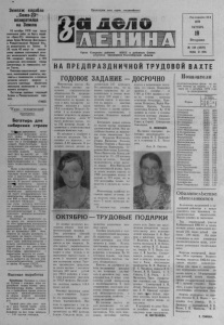 Э к и п а ж корабля , , С о ю з - 2 3 “ возвратился на Землю 1 6 о к тя б р я 1 9 7 6 года после о к о н ч а н и я работ на борту кор а б ля « С о ю з - 2 3 » космонавты то в а р и щ и Зудов Вячеслав Д митриевич и Р о ж д е с т в е н с к и й Ва лерий Ил ь ич возвратились на Землю. В 2 0 часов 4 6 м и н у т по московс к о м у времени с п у с к а ем ы й а п п а ра т к о с м и ч е с ко го корабля «Союз - 2 3 » совершил пос адку в 1 9 5 ки л о м е т р а х ю го -з ап а д н е е города Ц ел и н о гр ад а на поверхность озера Т е н г и з . П о ис ков о -с п а с а те л ьны й к о м п л е к с , в к л ю ч а ю щ и й самолеты, вертолеты и пл авсредств а, в с л ожны х у сл ов и ях ночного времени и сильного снего пада обеспечили э в а к у а ц и ю космонавтов и с п у с ка ем ого а п п а р а т а . Со стояние здоровья то варищ ей Зудова и Р ож д е с т в е н с к о го хорошее . ( Т А С С ) . К у р с — т ехн ич еск ий п р о г р е с с Богатырь для сибирских строек В ^ | с к е завершены производственные испытания мачтового крана. Государственная комиссия подписала акт о приемке ег о в постоянную эк сп лу атацию. Кран-богатырь, пр ед назначенный д л я монтажа кр упно га баритн ого оборудования , способен по днять ты сяч е тонный г р у з на высоту до 120 метров. Скон струировали ег о специалисты института « Г и д р о - неф те сп ецм он таж » и Т а л л и н ск ого п о ли техни ч еск ого института. Ныне сущ ес т в ующ и е м еха низмы м о г у т перем ещать конструкции весом не б о л е е 500 тонн и многотонное о б о р у д ов а ние приходится собирать по частям. В десятой п я тилет ке в С и б л ф намечается возвести ряд объ е к т ов химической, нефтеперерабатывающей и нефте химической промышленности , где б у д е т уста на в лива ться т е х но ло ги ч е ск о е оборудование весом 8 0 0 и б о л е е тоня. Здесь-то и поможет « в е л и к а н » . основные у з л ы ко торо го и з г о т о в л е ны ко ллектив ам и С в ер д л ов с к о го механического , К у з н е ц к о г о м е т а лл ок он с т р у к ц ий и Ч ебар- к у л ь с к о г о ремонтно-м еханического заводов. Н е с м о т р я на гигантскую сил у крана, ег о м е т а л л о е м к о с т ь за счет применения материалов повышенной прочности о с тала сь практически бе з изменения, а вес не превышает 3 0 0 Фвнн. А г р е г а т не т рудно ра зобра ть и доставить на новую стройку. У п р а в л я т ь великаном будет всего один инжен ер -оператор с п у л ь т а , р асп олож енно го в б е з о пасной зоне — на расстоянии 150 м етров от места подъема'. П е ре гов ор ы монтажников с оператором ведутся по радио. Т р у д о в а я биография « г е р к у л е с а » начнется на Омском нефт еперерабатывающ ем комбинате имени 50 -лети я С С С Р . (К о р р . Т А С С ) . Высокая выработка Краснодар. К о л х о з ы и со вхозы К у ба н и с каждым днем наращивают темпы жатвы риса. М е ха ни за т оры по лны решимости в ближайш е е время довести су т о ч н у ю п р ои зводи тельно сть на у б о р к е ценной кр упяной к у л ь т у р ы до 12 ты сяч гекта ров. У р ож а й риса у ж е снят почти с д в у х тре тей чеков, которые ныне з а н и м а ю » сам ую б о л ь ш у ю за все годы п лощ а дь — 144 тысячи гектаров, Пролетарии всех стран, соединяйтесь! ** .Ч М Д0/1И Орган Северного райкома К П С С и районного Совета депутатов трудящихся Новосибирской области Год издания 42-й 1 9 7 6 ОКТЯБРЬ 19 Вторник № 1 2 6 ( 4 4 7 6 ) Цена а коп. НА П Р Е Д П Р А З Д Н И Ч Н О Й Т Р У Д О В О Й В А Х Т Е ГОДОВОЕ З А Д А Н И Е - ДОСРОЧНО Показатели Животноводы колхоза «Память Ленина» успешно выполняют социалистические обязательства. По предвари