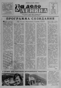 Работники транспорта и связи! Развивайте и совершенствуйте с р е д с тва транспорта и связи! В с е м е р н о у л у чш а й т е о б сл уж и в ани е н а р о д н о го х о з я й с т в а , п о л н е е удов л етворяй те запр о сы сов е т с к и х людей! (Из Призывов ЦК КПСС к 59-й годовщине Великой Октябрьской социалистической революции Пролетарии всех стран, соединяйтесь! Орган Северного райкома КПСС и районного Совета депутатов трудящихся Новосибирской области Год издания 42-й 1976 ОКТЯБРЬ 30 Суббота № 131 ( 4 4 9 1 ) Ц ен а а в он . П Р О Г Р А М М А С О З И Д А Н И Я П рограмму созидательного ■ ■ труда на десятое пятилетие наметила наша партия. «Десятая пятилетка,— сказал товарищ Л. И. Брежнев в речи на октябрьском ( 1 9 7 6 г.) Пленуме ЦК КПСС,— это пятилетка огромных масштабов и больших экономических возможностей». Перед страной, перед нашей партией и народом, подчеркнул он, «открывается огромная, захватывающе интересная работа. Работа крайне ответственная. И от того, как мы будем работать, как мы будем выполнять намеченные планы, зависят мощь, авторитет и процветание нашей Родины, благополучие каждой семьи, благосостояние и счастье каждого советского человека». Пленум ЦК КПСС одобрил в основном проект десятого ня- тилетнего плана, а также проекты плана и бюджета на 1 977 год и постановил внести их на обсуждение депутатов высшего органа государственной власти страны. Пятая сессия Верховного Совета СССР девятого созыва начала работу в Кремле 77 октября. Бурными, продолжительными аплодисментами, стоя, депутаты и гости встретили товарищей: Л. И. Брежнева, Ю. В . Андропова, В . В . Гришина, А. А. Громыко, А. П. Кириленко, А. Н. Косыгина, Ф. Д. Кулакова, Д. А. Кунаева, К . П. Мазурова, ' А. Я . Пельше, Н. В . Подгорного, Г . В . Романова, М. А. Суслова, Д. Ф. Устинова, В. В . Щербицкого, Г . А. Алиева, П. Н. Демичева, П. М. Маше- рова, Б . Н. Пономарева, Ш. Р. Рашидова, М. С. Соломенцева, И. В . Капитонова, В . И. Долги х , К . Ф. Катушева, М. В. Зимянина, К . У . Черненко, Я . П. Рябова. Была утверждена повестка дня сессии. В нее включены Н а сессии Верховного Совета СССР вопросы о Государственном пятилетием плане развития народного хозяйства СССР на 1 9 7 6 — 1980 годы, о Государственном плане и бюджете СССР на 1977 год, а также об исполнении Государственного бюджета СССР за 1975 год; о проекте Закона СССР об охране и использовании памятников истории и культуры; об утверждении Указов Президиума Верховного Совета CCQP и другие. С докладом о Государственном пятилетием плане развития народного хозяйства СССР на 1 9 7 6 — 1980 годы и о Государственном плане развития народного хозяйства СССР на 1977 год выступил заместитель Председателя Совета Министров СССР, председатель Госплана СССР депутат Н. К . Байбаков. Десятый пятилетний план, сказал докладчик, характеризуется рядом особенностей, отвечающих требованиям современного этапа экономического развития страны, возросшей производственной мощности, которая позволяет все больше внимания уделять социальным экономическим вопросам, и прежде всего повышению материального и культурного уровня жизни советских людей, улучшению условий их труда и быта. Усиливается роль повышения эффективности общественного производства, интенсивных факторов, научно-технического прогресса в решении задач развития народного хозяйства. Ускорение научно-технического прогресса и интенсификация производства, создани