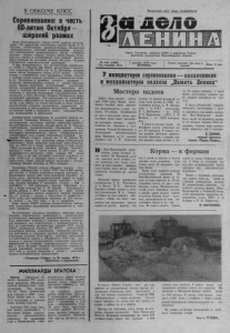 В ОБКОМЕ КПСС Соревнованию в честь 6 0 -л е т и я Октября - ш ирокий р а зм а х Бюро Новосибирского обкома К П С С прин яло по становл ен ие « О б инициативе к о лл е к ти в ов заводов имени В. П. Чка лова , « С и б с е л ь м а ш » , пр оизводств енных объединений « Э л е к т р о а г р е г а т » м о л о ч н о й промышленности, у п р а в л е ния х леб опека рн ой промышленности, треста « С и б п р о д . м о н т а ж » , Обского совхоза, к о л х о за имени Кирова К о л ы - ванского района и локомотивно го депо станции Н оз оси - би р с к -Г ла вны й по достойной встрече 6 0 - л е т и я Великой Октябрьской социалистиче ской р е в о лю ц ии » . В н е м подчеркивается, что постановление о к т я б р ь ск о го ( 1 9 7 6 г . ) П л е н у м а Ц К К П С С , вы ст у п ле ни е Г е н е р а л ь но го секр етаря Ц К К П С С тов. Л . И. Брежнева, решения пятой сессии В ер ховн о го Совета С С С Р нашли горячий отк ли к у коммунистов, в с е х т р у д ящ и х ся нашей области и вызвали новый подъ ем трудовой и политической активности. П р о д о лж а я и развивая с ла вную традицию — встречать зн ам ен а т ельны е события в жизни советских люд ей новыми трудовыми достижениями, к о лле кти вы многи х предприятий промышленности, транспорта, к о л хозов и совхозов вы ступили с ценными инициативами и починами и приняли повышенные социалистические о б я зат е ль с т в а tB ч ес ть 6 0 - л е т и я В е лик ой Октябрьской социа листической ре волюции . Они на п ра в лены на дальнейше е повышение эффективности производства и у л у ч ш е н и е к а чества всей работы на основе изыскания и б о л е е по лного испо льзовани я ре зервов производства, технического п е ревоор уж ени я и рекон струкции предприятий, внедрения достижений на у ки и передового опыта, совершенствова ния планирования и управления. Инициаторами соревнования по достойной встрече ш е стидесятой годовщины В е л и к о го Октября , отм ечается в постановлении, выступили рабочие, инж ен ер но-техни ческие работники и с л у ж ащ и е заводов имени В. П. Чкалова, « С и б с е л ь м а ш » , производств енных объединений « Э л е к т р о а г р е г а т » , м олочной промышленности, уп р ав л ен и я х л е бопекарной промышленности, треста «С и б п р о д м о н т а ж » , локомоти вно го депо станции Н ов осибирск -Главный , т р у женики Обского совхоза, к о л х о за им. С. М. Кирова Ко - чви лванского района. Так , к о лл е к ти в завода « С и б с е л ь м а ш » пер е см о т р е л ранее принятый встречный п л а н - о б я з а т е л ь ство на 19 76 г од и реш и л д о п о лн и т е л ь н о к н е м у р е а л и зовать продукции на один м и л л и о н р у б л е й , п о лу ч и т ь пр ибыль в с ум м е 150 тысяч р у б л е й . В 1977 год у п р е дусматривается изготовить с в е р х задания 100 борон « Б Д Т - 2 , 5 » , к 20 мая поставить с е л ь с к о м у х о зяй ств у с е я лки « С З П - 3 , 6 » и запасные части к ним в о б ъ е м е п я тимесячного плана, довести выпуск продукции с г о с у д а р ственным Знаком качества до 6 3 ,4 процента. Т р уж ени ки Обского совхоза о б я за л и с ь прод ать г о с у дарству д оп о лн и т е л ьн о к п л а н у 19 76 года 6 . 2 0 0 ц е нтн еров м о л о к а , в течение с т о й л о в о г о периода поставить на интенсивный откорм 3 0 0 г о л о в м о ло дн як а крупного р о гатого скота, обе сп ечив ср едн е с у т очн ы й привес не менее чем 8 0 0 гр аммов на каждую г о л о в у , п о л у ч и т ь в 1977 год у урож а й зерн овы х 17 центнеров, овощей — 320 и к а рт оф е ля — 150 центнеров с гектара. Работники п о л ей и ферм ко лх о за им. С. М. Кирова К о лы 