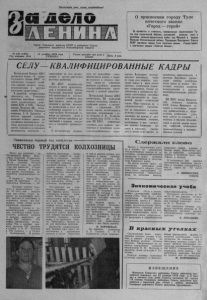 Пролетарии всех стран, соединяйтесь! -13* ' Орган Северного райкома КПСС и районного Совета депутатов трудящихся Новосибирской области О присвоении г о р о д у Туле почетного звания «Город — герой» За мужество и стойкость, проявленные з а щ и тн и кам и Т у лы при героической обороне, сыгравшей в а ж н у ю роль в разгроме нем ецко-ф ашис тских войск под Москвой в период Великой Отечественной войны, Президиум Верховного Совета СССР присвоил городу Туле почетное звание «Город-г ерой» с вручением медали «Золотая Звезда». № 148 (4498 ) Год издания 42-й 11 декабря 1 9 7 6 года Газета выходит три раза в СУББОТА неделю Цена 2 коп. СЕЛУ— КВАЛИФИЦИРОВАННЫЕ К А Д Р Ы Центральный Комитет КПСС рассмотрел вопрос «О работе Ростовского обкома КПСС по укреплению сельского хозяйства кадрами среднего звена, механизаторами и другими массовыми профессиями». В принятом постановлении отмечается, что Ростовская областная партийная организация, руководствуясь решениями XXIV и XXV съездов партии, Пленумов ЦК, указаниями Генерального секретаря товарища Л. И. Брежнева в области кадровой политики, проводит большую работу по улучшению качественного состава руководителей и специалистов колхозного и совхозного производства, подготовке и закреплению на селе механизаторов и других работников массовых профессий. ЦК КПСС положительно отнесся к опыту организаторской и политической работы Ростовской областной партийной организации по укреплению сельского хозяйства кадрами среднего звена, механи- заторами и другими массовыми профессиями и счел целесообразным провести в г. Ро- стове-на-Дону Всесоюзный семинар по изучению форм и методов работы партийных организаций с кадрами колхозного и совхозного производства. В постановлении указывается, что дальнейшее совершенствование работы с кадрами колхозов и совхозов является одним из решающих факторов успешного, развития сельскохозяйственного производства в десятой пятилетке. Центральный Комитет КПСС рекомендовал ЦК компартий союзных республик, обкомам и крайкомам партии в соответствии с указаниями XXV съезда партии, положениями и выводами, изложенными з речи товарища Л. И. Брежнева на октябрьском ( 1 9 7 6 г.) Пленуме ЦК КПСС, решительно улучшить дело подбора, расстановки и воспитания кадров сельскохозяйственного производства. Необходимо постедо- вательно добиваться, чтобы во главе всех хозяйств, отделений, бригад и ферм стояли опытные, политически грамотные специалисты, умелые организаторы и воспитатели трудовых коллективов, способные вести производство на современной научно - технической основе. Шире вовлекать их в социалистическое соревнование за выполнение и перевыполнение плановых заданий, оказывать им помощь в лучшем использовании резервов, воспитывать у них стремление активно применять все новое и передовое, претворять в жизнь курс партии по повышению эффективности и качества. Партийные организации обязаны настойчиво вести линию на полное обеспечение сельского хозяйства механизаторами и другими квалифицированными работниками. ЦК КПСС обязал Министерство сельского хозяйства СССР,Советы Министров со юзных и автономных республик, крайисполкомы и облисполкомы решительно улучшить работу по созданию в колхозах и совхозах механизаторам ц другим кадрам массовых профессий необходимых производственных и жи