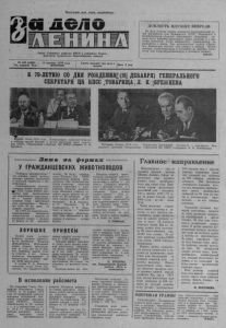 Пролетарии всех стран, соединяйтесь! U i l U / l V Орган Северного райкома КПСС и районного Совета депутатов трудящихся Новосибирской области № 149 (4499) Год издания 42-й 14 декабря 1976 года ВТОРНИК Газета выходит три раза в неделю Цена 2 коп. ДОБЛЕСТЬ ИДУЩИХ ВПЕРЕДИ Во всех уголках страны подхвачен патриотический почин тружеников села Башкирской АССР, Ивановской и Целиноградской областей, обязавшихся завершить р е монт всего машинно-тракторного парка досрочно и с вы соким качеством. Слово инициаторов соревнования не расходится с делом. Так, механизаторы совхоза «Д р уж ба» Ивановской области уж е сейчас, в первых числах декабря, отремонтировали и поставили на линейку готовности всю почвообрабатывающую и посевную технику. (ТАСС) К 70-ЛЕТИЮСО ДНЯ РОЖДЕНИЯ^(19] ДЕКАБРЯ) ГЕНЕРАЛЬНОГО СЕКРЕТАРЯ ЦК КПСС .ТОВАРИЩА \ Л. И. [БРЕЖНЕВА Июнь 1976 года. Конференция коммунистических и рабочих партий Европы. С речью выступает глава дел е га ции КПСС, Генеральный секретарь ЦК КПСС товарищ Л И Брежнев. Бухарест. Ноябрь 1976 года. Подписание Декларации государств — участников Вар шавского Договора Генеральным секретарем ЦК КПСС товарищем Л. И.- Брежневым. Г л а в н о е н а п р а в л е н и е ............... З и т а и а ф е р т а х - ■ - ■ ■ ■ ■ ■ ■ ■ ■ ■ ■ ■ ■ ■ У ГРАЖ ДАНЦЕВСКИХ ЖИВОТНОВОДОВ Успешная зимовка скота — * это, хорошие надои молока,: высокие привесы молодняка и неплохой заработок у животноводов. Гражданцевская молочнотоварная ферма (колхоз име- # и XXII съезда КПСС) обеспечена всем необходимым для нормального хода зимовки — теплые пом ещ ен ия ,! хороший корм, заботливый уход работающих. Правда, нет соли. Но на днях ее должны подвезти. На 1976 год животноводы- гражданцевцы принимали обязательство — надоить на фуражную корову в среднем по ф ерме по 22 центнера Х О Р О Ш И Е Группу телок случного возраста, которая зак р еп л е на з а скотником Ф едошм Демьяновичем Морозовым, можно назвать во зрожденной: до того, как он ее принял, животные давали отвес з а отвесом. А вот теперь произвели взвешивание и обрадовались: получен привес 2 1 4 3 килограмма. В группе Ф. Д. Морозова семьдесят голов. Легко подсчитать, что среднесуточный На основании Указа П р е зидиума Верховного Совета РСФСР от 12 ноября 1976 года «О проведении выборов народных заседателей р а й онных (городских) народных судов РСФ С Р » , решения облисполкома от 26 ноября с. г. и в соответствии со ст. ст. 70 и 71 «Положения о выборах районных (городских) народных судов РСФСР» , исполнительный молока. Но после октябрьского 'П л ен ум а ЦК КПСС животноводы решили пер есмотреть свои обязательства. Когда секретарь парткома колхоза ознакомил с материалами Пленума, животноводы обязались добиться годового надоя молока на корову по 24 центнера. При этом каждая доярка — М. М. Федорова, В. Д. Акилина. М. С. Павленко, С. М. Кашкадарова, Т. К. Крав, ченко и другие — приняли индивидуальные обяза тель ства. Они оформлены и вы вешены в красном уголке фермы. П Р И В Е С Ы привес каждой головы составил по 1020 граммов. Хороший -привес получила от телят своей группы опытный животновод, орденоносец Елена Андреевна Рябце- ва. У нее тоже семьдесят голов молодняка. З а ис текший месяц в общей сложности привес составил 1255 килограммов. На голову же обошлось по шестьсот г р а м мов. Кормами нынче мы обескомитет Северного районного Совета депутатов т р у д я щихся решил провести 