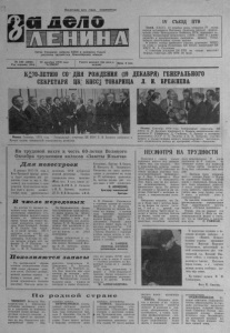 f *-=■* Пролетарии всех стран, соединяйтесь! г к Орган Северного райкома КПСС и районного Совета депутатов трудящихся Новосибирской области IV СЪЕЗД ПТВ Ханой. (ТАСС). 14 декабря здесь открылся IV съ е зд партии трудящихся Вьетнама. Делегаты обсадят политический отчет Центрального Комитета ПТВ, определят основные направления-пятилетнего ( 1 9 7 6 — 1980 гг.) план а развития и преобра зования экономики,_ примут Устав, изберут центральные органы партии. В работе съ е зд а принимает участие д елегация КПСС во главе с членом Политбюро ЦК КПСС, с ек р е тар ем ЦК КПСС М, А. Сусловым. С отчетным докладом ЦК ПТВ н а с ъ е з д е выступил Первый секре тарь ЦК ПТВ Ле Зуан. № 150 (4500) Год издания 42 -й 16 декабря 197 6 года Газета выходит три р а з а в ЧЕ ТВ ЕРГ неделю Цена 2 коп. К|70-ЛЕТИЮ СО'ДНЯ РОЖДЕНИЯ (19 ДЕКАБРЯ) ГЕНЕРАЛЬНОГО СЕКРЕТАРЯ ЦК' KHCCJ ТОВАРИЩА Л. И. БРЕЖНЕВА Москва. Сентябрь. 1 975 годса. Генеральный - секретарь ЦК КПСС Л. И. Брежнев принимает в Кремле группу зачинателей стахановского движения. Москва. Сентябрь 1975 года. Генеральный секр е тар ь ЦК КПСС Л. И. Бр ежнев принимает в Кремле американских космонавтов Т. Стаффорда, Д. Слейтона, В. Бр ан д а и летчиков- космонавтов СССР А. А. Леонова и В. Н. Кубасова, участвовавших в осуществлении первого международного пилотируемого космического полета по программе «Союз— Аполлон». На трудовой вахте в честь 60 -летия Великого Октября труженики к о л х о з а «Заветы Ильича» гЩмж ш о ш о с т р о е х с К зимовке 1 9 7 7 - 7 8 года в Ново-Троицкой бригаде ремонту будут подлежать два коровника (один из них в «Михеевне), три телятника и один телятник будет построен вновь. Для этой и других хозяйственных нужд запланировано заготовить 1200 кубометров деловой древесины. Создано специальное звено заготови- fRieft леса. В него вошли во- . дители К-700 В. Л. Степанов и Н. М. Лапенко, водители ДТ-75 И. II. Кочерешко и Н . Я . Кочерешко, рабочие И. Зверев, И. Пинтусов, И. Вилынкерст. Ежедневно это звено заготавливает и доставляет на склад до 32 кубометров древесины. За полтора месяца уже создан запас в 550 кубометров. В. АВЛАСЕНКО, бригадир комплексной бригады. Б ч и с л е п е р е д а в ш и : По итогам 11 месяцев т е кущего года тринадцать доя рок колхоза справились с годовым планом валового надоя молока от закрепленных групп. Среди них самый вы сокий показател ь имеет доярка Ново-Троицкой фермы Н. М. .Середа. Она надоила от своей группы 4 6 7 , 4 центнера, а на корову — 227 5 килограммов. По 4 35 центнеров полумили по своим группам доярки той же фермы Е. Л. Ш ул яев а и Н. Ф. Хилкова, 4 41 ц е н т нер — М. И. Семенова. По Медвежинской ферме был установлен план валового надоя молока н а группу за год 3 5 0 центнеров. К концу ноября с этим з а д а нием справились все доярки. Причем Е. Н. Малышева получила 4 38 центнеров и добилась самого высокого н а доя на корову — по 244 2 килограмма. Среди победителей в социалистическом соревновании доярка Михеевской ф е р мы Н. М. Зубкова, доярка Ново-Покровской фермы О. Н _Симаева. Справилась с годовым планом по группе первотелок Л. П. Изюрова. Первенство по надоям молока на корову с начала года завоевал коллектив Медвежинской молочнотоварной фермы — 2211 к и лограммов. Годовой - план валового надоя эц£сь з а 11 месяцев выполнен на 118 процентов., В целом колхоз «Зав еты Ильича» с годовым планом надоя молока и поставок его государству с п р а вился в октябре. А. ЗАЙЦЕВ, секр е тар ь парт