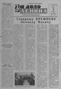 2 l l i i i i i i i i i i i i i i i i i i i i i i i i i i i i i i i i i i i i i i i i i i i i i i i i i i i i i i i i i i i i i i i i i i i M i i i i i i i i i i i i i i i H i i i i З А Д Е Л О Л Е Н И Н А i l l l l l l i l l l l l l l l l l l l l l i i l i l l l l l H l U i l l l u i 2 3 декабря 1 9 7 6 года $ № 1 5 3 Товарищ у Б Р ЕЖ Н Е В У Леониду Ильичу (Окончание. Нач. на 1-й стр.) Выдвинутая Вами, Лео нид Ильич, на XXIV съ е з д е КПСС Программа мира стала мощным позитивным фактором оздоровления международных отношений, поворота к р а зря дк е н а п ря женности и все более прочному утверждению принципов мирного сосуществования между государствами с различным социальным строем, за которые боролся В. И. Ленин. С воодушевлением восприняли советские люди, все честные люди на земле и з ложенные Вами на XXV съезде КПСС программу дальнейшей борьбы за мир и международное сотрудничество, за свободу и не зави симость народов, в которой воплощена единая воля КПСС и советского народа — отстоять и упрочить дело мира и прогресса человечества, устранить угрозу мировой термоядерной войны. Советские люди гордятся, что каждый шаг внешнеполитической деятельности Центрального Комитета КПСС, Политбюро и Вашей лично, Леонид Ильич, посвящен достижению этих благородных гуманных ц е лей. Вдохновенной, страстной борьбой за мир. Вы снискали себе признательность всех людей доброй воли на земле, которая нашла выражение в присуждении Вам Ленинской премии «За укрепление мира между народами» и награждение Золотой медалью мира им. Ф. Жолио-Кюри. Реакционные империалистические силы всячески тор мозят процесс разоядки международной напряженности и продолжают гонку вооружений. Поэтому советское государство, партия и ее Центральный Комитет проявляют неослабную заботу о поддержании на долж ном уровне обороны нашей Родины. Лично Вы, Леонид Ильич, на песту Председателя Совета Обороны вносите большой вклад в строительство наших славных Вооруженных Сил. Научной основой всей д е ятельности нашей партии, ее внутренней и внешней п оли . ' тики является творчески применяемое и развиваемое маркеистско - ленинское у ч е ние. Велик Ваш, Леонид Ильич, личный вклад в дальнейшее творческое р а з витие партией марксистско- ленинской науки, в особенности применительно к у сл о виям строительства развитого социализма, и перехода к коммунизму, в глубокую р а зработку ключевых проблем экономического и социального развития страны. Выдвинутые Вами положения по вопросам развития социалистической индустрии, а г р а р ной политики, направленные на всемерное развитие с е л ь ского хозяйства, повышения эффективности общественного производства, соединения достижений научно - технической революции с преимуществами социалистического строя, совершенствования Ц ен тр а л ьн ы й К о м и т е т К о м м у н и с т и ч е с к о й пар ти и Советского Союза общественных , отношений, коммунистического воспитания трудящихся, по проблемам международных отношений и задачам внешнеполитической деятельности КПСС и Советского государ ства имеют основополагающее значение на современном этапе развития нашей Родины. Дорогой Леонид Ильич! Вы заслужили глубокое уважение, любовь и доверие коммунистов и всех советских людей, посвятив все свои силы беззаветному с л у жению партии и народу. Вы с честью выполняете возложенную на Вас партией миссию, возглавляя ее боевой штаб — Центральный Комитет. Партия и навод, знают, с какой поистине н е исч
