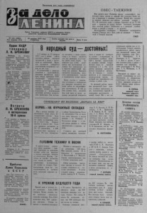 Пролетарии всех стран, соединяйтесь! H U / I U г и Орган Северного райкома КПСС и районного Совета депутатов трудящихся Новосибирской области № 154 (4504 ) Год издания 42-й 25 декабря 1976 года СУББОТА Газета выходит три раза в неделю Цена 2 коп. О В Е С - Т А Е Ж Н И К Имя ярового овса «Таежник» вполне соответствует назначению злака: далеко не каждый сорт зерновых может расти и вызревать в таежных условиях. Новый овес успевает за короткое сибирское лето набрать отличный урожай — 2 0 — 40 центнеров зерна с гектара. Созревает он за 7 5 - 1 0 0 дней — примерно на декаду быстрее известного агрономам овса «золотой ^ождь». Отличается он и завидной устойчивостью к дождям и ветрам — не полегает. Месторождение «таежника» — Нарымская селекционная станция (Томская обл.). Путь свой он начинает с Тюменской и Томской областей. (ТАСС ) Орден КНДР т о в а р и щ у Л . И. БРЕЖНЕВУ Пхеньян, 19. (ТАСС). Президент Корейской Н ародно . Демократической Республики Ким Ир Сен издал у к а з о награждении Генерального секр е та ря ЦК КПСС Л. И. Б р еж н е в а орденом «Государственного з н а мени» 1-й степени. Как передало агентство ЦТАК, в указе говорится, что Центральный народный комитет КНДР награждает товарища Л. И. Брежнев а «за заслуги в процветании и развитии Советского Союза и у л и ш е н и и благосостояния народа, за поддержку борьбы нашего народа за самостоятельное мирное объединение родины, за вклад в развитие традиционных отношений дружбы и сотрудничества между народами Кореи и Советского Союза и по случаю 70-летия со дня его рождения». В с т р е ч а Л . И. БРЕЖНЕВА с ветеранами 18-й армии 21 декабря в Кремле состоялась встреча Г енераль ного секр е таря ЦК КПСС Л. И. Брежнев а с фронтовыми друзьями — в е т е р а нами 18-й армии. Однополчане, прибывшие в Москву из многих городов страны, горячо поздравили своего комиссара — Леонида Ильича Б р еж нев а с 70- летием со дня рождения и пожелали ему дальнейших успехов в деятельности на благо социалистической Отчизны, во имя упроче!.чия мира во всем мире. Товарищ Л. И. Брежнев, сердечно поблагодарил в етеранов 18-й армии з а поздравления. (ТАСС). Прибытие Луиса Корвалана в С С С Р Как уже сообщалось, Генеральный секр е тар ь Компартии Чили товарищ Луис Корвалан под давлением мирового общественного ’мн е ния освобожден чилийскими властями из тюрьмы и выслан за пределы Чили. Коммунистическая партия Советского Союза и Советское государство выразили готовность оказать ему полное гостеприимство. 18 декабря товарищ Луис Корвалан с супругой прибыл ш Советский Союз. (ТАСС). 6 народный суд— достойных! С 5 января по 15 февраля 1 9 7 7 года в нашем районе состоятся выборы народных заседателей в связи с истечением их полномочий. Народные заседатели избираются коллективами трудящихся сроком на два года. В соответствии с законодательством о судоустройстве, народным заседателем может быть избран гражданин СССР, обладающий избирательным правом, достигший ко дню выборов 25 лет. К народным заседателям предъявляются высокие требования. Это — граждане, которые по своим моральным и политическим качествам достойны осуществлять правосудие. Они постоянно находятся в своих коллективах и не только являются для них примером, но й хорошо знают своих людей, что помогает суду лучше разобраться при рассмотрении уголовных или гражданских дел и вынести правосудный приговор или решени