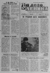 т Пролетарии всех стран, соединяйтесь! « ЦК КПСС и .. Совете Министров СССР Центральный Комитет КПСС и Совет Министров СССР в целях дальнейшего развития производства товаров народного потребления и лучшего удовлетворения спроса населения за эти товары в соответствии с решениями XXV съезда КПСС приняли постановление «О развитии в 1 9 7 6 — 1980 годах производства товаров массового спроса и о мерах по повышению их качества». Министерствам, ведомствам СССР и Советам * Министров союзных республик на 1 9 7 6 — 1 98 0 годы установлены задания, предусматривающие увеличение выпуска этих товаров в 1,7 раза. Предусмотрено повысить требования к качеству товаров массового спроса, увеличить выпуск изделий высшей категории качества. Изложение постановления опубликовано в центральных и республиканских газетах. ( Т А С С ) . Орган Северного райкома КПСС и районного Совета депутатов трудящихся Новосибирской области № 5 (4511 ) Год издания 42-й 11 января 1977 года ВТОРНИК Газета выходит три раза в неделю Цена 2 коп. Д е м о н с т р а ц и я б р а т с к о й соли дарн о сти В Москве с о с т о я л с я митинг — встреча представителей трудящихся столицы, советских общественных организаций с Генеральным секретарем Коммунистической партии Чили товарищем Луисом Кор- валаном. Сердечно приветствовали москвичи мужественного руководителя славной Чилийской компартии, более трех лет находившегося в фашистских застенках. Его стойкость и мужество вдохновляли чилийский народ на борьбу против тирании, за демократию и свободу на чилийской земле. Митинг открыл' член Политбюро ЦК КПСС, первый секретарь МГК КПСС В. В. Гришин. Затем выступил член Политбюро ЦК КПС , секретарь ЦК КПСС А.. П. Кириленко. Выступившие на митинге- встрече ораторы подчеркнули, что освобождение Луиса Кор- валана является крупной победой сил мира и социализма, в достижении которой активную роль сыграли КПС , советский народ, международное коммунистическое движение, народы стран социалистического содружества. Бурной, продолжительной овацией встретили участники митинга выступление Генерального секретаря Коммунистической партии Чили Луиса Корвалана. ( Т А С С ). В е с т и с п о л е й Ульяновск. Сотни агрегатов вышли на колхозные и совхозные поля области. Механизаторы ведут снегозадержание на посевах озимых, которые в местных условиях дают наиболее высокие урожаи. Снег уплотняется катками. Л и п е ц к . 2,5 миллиона тонн органических удобрений вывезли на поля под урожай 1 9 7 7 года «.механизированные отряды спецотделений «Ли- пецК-агрохимтреста». Они также произвестковали в хозяйствах области более 2 7 тысяч гектаров кислых почв, а на площади свыше 120 тысяч гектаров, отведенной под сахарную свеклу, внесли минеральные удобрения. Краснодар. Хлеборобы Кубани ведут массовый уход за посевами, Самолеты сельскохозяйственной авиации подкармливают озимую пшеницу и ячмень азотными удобрениями. Большое внимание уделяется подкормке посевов на участках, отведенных под сильные пшеницы. Б а к у . К зимним влагозаряд- ковым поливам земель приступили земледельцы Азербайджана. Мелиоративные отряды колхозов и совхозов отремонтировали каналы и оросители, провели тщательную планировку полой. В каждом хозяйстве разработаны графики круглосуточного полива. ( Т А С С ) . Р а д у е т и о б я зы в а ет Постановление ЦК КПС , Совета Министров СС Р и ВЦ
