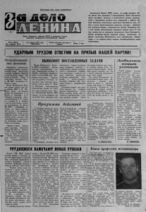 Пролетарии всех стран, соединяйтесь! Орган Северного райкома КПСС и районного Совета депутатов трудящихся Новосибирской области Цен тр а л ьн ы й Комите т К П С С с ч и тае т , что особое внимание сейчас д о лж н о быть приковано к ж и в о т н о в о д с т в у . Самая н е о т л о ж н а я задача п а р т и й н ы х , сов е тск и х и х о з я й с т в е н н ы х органов, р у к о в о д и тел ей и с пециа листов хо зя йс тв , всех к о л хо з н и к о в и рабочи х совхозов обеспечи ть значи тел ьное у в е л и ч е н и е производства мяса, мол о к а и д р у г и х ж и в о тн о в о д ч е ск и х п р о д у к т о в , у л у ч ш и т ь снабжение ими населения городов и промыш ленны х центров. Р е ш а ю щ ую рол ь в этом сыграет организованное проведение зимовки скота. В этом г о д у у с л о в и я д л я ее проведения складываю тся более б л а г о п р и я тн о . Кормов заготовлено бо льше, повысился уро в е н ь механизации на фермах, у л у ч ш и л а с ь обеспеченность скота современными помещениями, и что особенно важно, выросли к ва лифицированны е кадры № 8 (4514) 18 января 1977 года Газета выходит три раза в Цена 2 коп. животноводов . Год издания 42-й ВТОРНИК неделю . ВЫПОЛНЯТ П ОС ТАВ ЛЕННЫ Е З А Д А Ч И ИсполЬзовашЬ в с е р е з е р в ы Коммунисты, комсомольцы, руководители бригад, молочнотоварных ферм, специалисты сельского -хозяйства собрались в Доме культуры. Актив села Биазы и колхоза «Путь к коммунизму» обсуждал Письмо ЦК КПСС трудящимся Советского Союза. Письмо Центрального Комитета партии зачитал член бюро райкома КПСС А. И. Шу- "’ ЧЬъков. Сразу же начались прения. И механизатор С. С. Иванов, и зоотехник А. Е. Тишковец, и бригадир Веселовской бригады А. Е. Акатьев, и агроном М. Д. Ковшар, и другие выступающие товарищи подчеркивали, что Письмо ЦК КПСС — важнейший документ, что задачи, вытекающие из него,— это повышение продуктивности скота и урожайности полей. А чтобы достигнуть нового подъема сельскохозяйственного производства, необходимо лучше использовать его резервы. Собрание решило широко, всему населению разъяснить Письмо ЦК КПСС и добиться в 1 97 7 году урожайности зерновых не менее 14 центнеров г с гектара, досрочно выполнять план поставок государству всех сельскохозяйственных продуктов. Письмо Центрального Комитета КПСС колхозникам, рабочим совхозов, механизаторам, ученым, специалистам сельского хозяйства, работникам промышленности, поставляющей селу материально-технические средства, всем трудящимся Советского Союза было тепло встречено тружениками колхоза имени К. Маркса. Работники животноводства, механизаторы говорят, что именно к ним относятся слова Письма: «Центральный Комитет КПСС считает, что особое внимание сейчас должно быть приковано к жиС большим интересом з а сл у шали труженики колхоза имени М. Горького Письмо Ц ентрального Комитета КПСС ко всем трудящимся ^ нашей страны и постановление ЦК КПСС, Совета Министров СССР, ВЦСПС и ЦК ВЛКСМ «О Всесоюзном социалистическом соревновании з а повышение эффективности и качества работы, успешное выполнение заданий десятой п я тилетки». С этими документами присутствующих ознакомил секре тарь партийной организации колхоза Г. Е. Аденский. С итогами работы хозяйства ’ за 1976 год и задачами н а предстоящий период выступил председател ь колхоза И. Д. Виноградов. С волнением, большим интевотноводству. Самая неотложная задача партийных, советских и хозяйственных орга