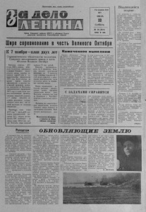 Пролетарии в сех стран, соединяйте сь ! Орган Северного райкома КПСС и районного Совета деп утат ов т р у дящ и х ся Новосибирской области Год издани я 4 2 -й 1977 ЯНВАРЬ 22 С у б б о т а № 10 ( 4 5 1 6 ) Ц е н а a s e n . Ши р есоревнование в честь Великого Октября К 7 н о я б р я—план двух л е т Социалистические об я за т ель ст ва коллектива С ев ерного маслодельного з а в о д а в честь 60-летия Великого Октября Выполняя решения XXV съезда КПСС> рабочие, инженерно-технические работники и служащие Северного маслодельного завода, досрочно завершили годовой план и социалистические обязательства 1976 года. Делом отвечая на призыв партии повысить эффективность и качество выпускаемой продукции, коллектив включается во Всесоюзное социалистическое соревнование 1977 года и путем более полного использования производственных мощностей досрочно, к 7 ноября обязуется завершить выполнение государственного плана двух лет десятой пятилетки по основным показателям. Выработать сверх плана 1977 года — масла ,8 0 0 центнеров, цельномолочной продукции 31 7 , творога обезжиренного 200 центнеров — на общую сумму 2 6 3 ,8 тьгс. рублей. Получить сверх плановой прибыли 27 тыс. рублей. Повысить производительность на 5 процентов, повысить качество выпускаемой продукции на 5 процентов сверх плановых показателей. С этой целью совместно с работниками животноводства вести постоянную работу по повышению качества молока. Начать строительство котельной, закончить реконструкцию гаража, завершить строительство жилого дома. Пробурить скважины для воды на Биазинском и Верх-Крас- нояреком сепараторных отделениях. Принимая эти социалистические обязательства, коллектив Северного завода вызывает на соревнование коллектив Кыш- товского маслодельного завода. Обязательства обсуждены и приняты на общем собрании коллектива завода. Н а м е ч е н н о е Прошло обсуждение Письма Ц К КПСС и постановления Ц К КПСС, Совета Министров СССР, ВЦСПС и Ц К ВЛКСМ «О Всесоюзном социалистическом с оре в новании з а повышение э ф ф е к т и в ности и качества- работы , успешное выполнение з аданий десятой пятилетки» в районном объеди нении «Сельхозтехника». П р и су тс т вующие коммунисты, комсомольцы, инженерно - технические р а ботники горячо восприняли эти документы партии. В своих выступлениях многие говорили о неиспользованных резервах, о п л а нах разви тия хозяйства . А. И. Кузнецов р а с с к а з а л о работе м е ханизированного о т р яд а , который успешно выполнил обя з а т е л ь с т в а С ЗАДАЧАМИ С большой заинтересованнос тью об суж д али Письмо Центрального Комитета КПСС раб отн ики м е ж колхозной строцДельндй т5- ч ц н и з а - ции. На, с о б р ан я к отмечи,'иГщ“ Что колхоз ам нужны современные д о бротные животноводческие помещения, зерносклады, жилые дома д ля колхозн иков и специалистов. Поэтому строительные о р г а н и з а ции должны с честью выполнять те обязанности, которые на них возложены. З а 1976 год Северная МСО сд а л а в эксплуатацию дв е н а дц а т ь плановых объектов. П л ан по п од рядным р а б о т ам выполнен. В первом к в а р т а л е 1977 года пер ед члев ы п о л н и м по всем п оказателям . В 1977 году объем работ механизированного о т р я д а значительно увеличится. На поля ко лхозо в нужно вывезти большое количество органических и внести минеральных удобрений, улучшить химическую защ и т у р а стений. Р а б о т а т руд оём к ая , но 