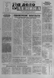 Год издания 4 2 - й 1977 ФЕВРАЛЬ 8 Вторник № 17 ( 4 5 2 3 ) Цена 2 коп. П р о л е т а р и и в с е х с т р а н , с о е д и н я й т е с ь ! Орган Северного райкома КПСС и районного Совета депутатов трудящихся Новосибирской области З А Д А Ч И ГОСУДАРСТВЕННОЙ В А Ж Н О С Т И Центр альный Комитет КПСС принял постановление «О работе Министерства бытового о б с л уж и вания населения РСФ СР по улучшению качества выполнения з а к а з о в и повышение культуры обслуживания трудящихся». В нем отмечается, что в соответствии с решениями XXIV и XXV съездов партии в стране осуществляются крупные мероприятия по развитию бытового обслуживания населения, дальнейшее улучшение кото рого яв л я е тся задачей большой г о сударственной важности. З а последние годы по существу со зд ан а новая от расль народного х о зяй ст ва. Только з а годы девятой п я ти летки на развитие этой отрасли направлено более 800 миллионов рублей. Объем реализации быто вых услуг возрос в 1,5 ра з а , в том числе в сельской местности — в 1,8 раза . Вместе с тем Ц К КПСС считает, что достигнутый уровень быто вого обслуживания населения Р о с сийской Федерации еще отстает от предъявляемых требований. Признано необходимым сосредоточить внимание местных п артий ных, советских, профсоюзных и хозяйственных органов на осуществлении практических мер по дальнейшему улучшению бытового обслуживания населения. П о с тановлением определены задачи, решение которых позволит более полно уд овлетворить потребности советских людей в бытовых усл угах, улучшить качество об сл уж и вания населения. Подчеркнута необходимость широко развернуть организаторскую работу по вовлечению тружеников гчужбы быта в соревнование 3 1 успешное выполнение зад ан и й д е сятой пятилетки, достойную в стречу 60-летия Великого Октября. Следует настойчиво распр о с тр анять опыт передовых коллективов и отдельных рабочих, добившихся высоких п оказателей в труде, подд е р ж и в а т ь и поощрять передовиков произв одства, всемерно содей ствовать выполнению и перевыполнению принятых обязате льс тв каждым трудовым коллективом, каждым работником. Ц К КПСС выра зил уверенность в том, что партийные, советские, профсоюзные, комсомольские о р г а низации, все работники службы быта, гото вясь к зн аменательному событию — к 60-летию Великой Октябрьской социалистической революции, еще шире развернут борьбу з а дальнейшее развитие и улучшение бытового о б с л у ж и в а ния населения и тем самым внесут достойный вкл ад в осуществление намеченной XXV съездом КПСС программы неуклонного повышения благосостояния советского народа. (ТАСС) Ф СОЦИАЛИСТИЧЕСКИЕ ОБЯЗАТЕЛЬСТВА ТРУДЯЩИХСЯ Б И А З И Н С К 0 Г 0 СЕЛЬСКОГО СОВЕТА ПО ДОСТОЙНОЙ ВСТРЕЧЕ 6 0 -Л Е Т И Я ВЕЛИКОЙ ОКТЯБРЬСКОЙ СОЦИАЛИСТИЧЕСКОЙ РЕВОЛЮЦИИ В ответ на постановления октябрьского (1976 г.) Плен ума Ц К КПСС, сессии Верховного Совета СССР, а такж е , следуя славной традиции встречать знаменательные со бытия в жизни советских лю дей новыми трудовыми достижениями, трудящиеся Биазин- ского сельского Совета единодушно включаются во Всесоюзное социалистическое соревнование и принимают следующие повышенные обязате льс тва в честь 60-летия Великого О к тября. 1. В юбилейном 1977 году своевременно за вершить всем организациям и учреждениям , расположенным на территории Совета, выполнение планов и заданий. Усилить борьбу за повыше