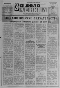 Комплексно Встав па ударную трудовую вахту в честь 60-й годовщины Великого О к т яб р я , з ем л е д е л ь цы колхоза им, Куйбышева Тата р ско го район а решили нынче с к а ж д о г о гек тара с о б рать по 25 центнеров зерна и по 200 центнеров зеленой м а с сы с плантаций пропашных культур . Сейчас куйбышевцы ведут комплексную подготовку к весне юбилейного года. Пролетарии всех стран, соединяйтесь! Орган Северного райкома КПСС и районного Совета депутатов трудящихся Новосибирской области Год издания 42-й 1 9 7 7 ФЕВРАЛЬ 10 Ч е т в е р г № 18 ( 4 5 2 4 ) Цена 2 коп. СОЦИАЛИСТИЧЕСКИЕ О Б Я З А Т Е Л Ь С Т В А трудящихся Северного района на г о д Трудящиеся Северного р а й о на, к а к и весь советский народ, вдохновенно т р у д я т с я над выполнением исторических решений XXV съ е зд а КПСС, н ачер тавшего величественные планы коммунистического строи тель ства. Промышленные п р е д п р и я тия и организации района д о с рочно выполнили по основным технико - экономическим п о к а з а т е л ям государ ственный план п социалистические о б я з а т е л ь ств а 1976 года — первого года десятой пятилетки. Сверх п л а на р еа ли зо в ан о продукции на 318 тыс. рублей. Объем промышленного производства в 1976 году по сра внению с 1975 годом возрос на 13 процентов, производ игельность т руда — на 5,2 процента. Труженики сельского хо зяй с т в а перевыполнили план п р о д а ж и г о су д ар с тву п р о ду к тов ж и во тно во д ств а . Колхозы район а на 2 месяца раньше срок а выполнили годовой о б ъ ем з а г о т о в о к молока. Г о с у д а р ству сверх плана сд ан о этого продук та более 8 тысяч ц ен т неров. Выполнен годовой план выходного поголовья коров, общес твенное стадо крупного рогатого ск ота ув еличилось по сравнению с 1975 годом на 4,8 процента. Ж и в о тно в о ды район а добились увеличения продуктивности молочного и мясного стада . Справились с о б я з а т е л ь с т в а ми работники строительства. На 101,8 процента возрос об ъем строительно -монтажных работ . В район е построено и введено в эксплуатацию ' 3327 к в а д р а т н ы х метров жилой площади, интернат щ„селе Че- баки на 50 мест, з д а н и е Д о м а печати, ц ен тр ал ьна я ко т е ль н а я в селе Северном, ж и в о т н о в о д ческие помещения д л я крупно го р огатого ск ота на 2400 мест. Выполнен план по сельскому ст роительству. Проведены з н а чительные работы по б л а г о у с т ро йству сел и д ер ев ен ь р а й о на. Достойный в к л а д в выполнение социалистических о б я з а тельств внесли работники т р а н сп о р та , связи , то р го вли и бы то вого о б с л у ж и в а н и я н а с е л е ния. В 1976 году быто вых у с луг о к а з а н о на 13,7 р убля на человека. Все наши д о с т и ж ен и я — р е з у л ь т а т постоянной заботы партии и советского п р а в и те л ь с т в а о т р у ж е н и к а х села , р е з у л ь т а т д е яте л ьн о сти первичных пар ти йных о рганизаций , большого политического п о д ъ ема, тв орческой активности и вдохновенного т р у д а р а б о чих, колхозников , инте лли г ен ции. С огромным воо душевлением в стретив решения о к т я б р ь с к о го (1976 г.) П л ен ум а Ц К КПСС, Письмо Ц К КПСС т р у д ящ им с я С оветского Сою за , П остановление Ц К КПСС, С о вета Министров СССР , ВЦСПС и Ц К В Л КСМ о Всесоюзном социалистическом с о р е в н о в а нии, рабочие , колхозники и с л у ж ащ и е р айона активно включились во Всесоюзное с о циалистическое соревнование з а повышение эффекти вности про и зво д ств а и к ачества раб оты , го т о в я т с я к дос