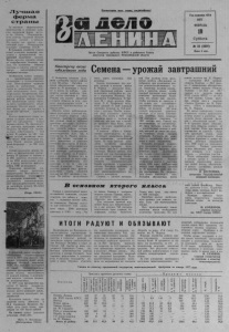Пролетарии всех стран, соединяйтесь! Л у ч ш а я ф е р м а с т р а н ы За высокую эффективность производс тва и отличное ка чес т в о продукции ферма к о л х о за им. Ленина Н о в о м о с к о в с к о г о района Тульской обл асти признана лучшей в отрасли. Эту оценку дал научно - т е х нический с ов ет Министерства сельского хозяйства СССР. В тульском хо зяйстве удачно решен комплекс в оп ро сов , с в я занных с промышленной т е х нологией получения молока. Ферма колхоз а принята сейчас за с в о е о б р а з н у ю б а з о в у ю м о дель. По тульскому о б р а зц у колхозы и сов хозы см о гу т с о з да вать высокоэффективные «фабрики молока». О с обен но с ть н ового комплекса — сравнительная простота инженерных и технологических схем. Испол ьзуется минимум машин, но дости гается м ак симум их надежности. Техническ ую возм ож н о с т ь э т о г о предопределило беспривязное б о к с о в о е со держание скота. Новые методы работы т ре б ую т научной организации труда, п реж де всего углубленность специализации. Полной мерой с л у жит ферме цех земледелия: в хозяйстве прочная кормовая база. Колхоз производит самое д е шевое в стране мол око и п ро д а с т ег о г о су д ар ст в у только первым сортом. На п ро и зв о д с т во центнера продукции з а т р а чивается не более 1,8 человеко-ча са , с еб е ст оим о сть — 13,0 рубля. В расчете на 100 гек- -tfpnH угодий хозяй ство п олу одет более 1000 центнеров м о лока. Надой молока о п е р а т о . рами-доярками — по 590 тонн в год. Сейчас коллектив фермы б о рется за приумножение д о с т и г нутого. В среднем о т к о р о в ы ,а их 850, намечено получить нынче д о 4350 килограммов м о л о ка, к концу пятилетки выйти на р у б еж 5000 килограммов. Перед ов ые операторы м а шинного доения выступили инициаторами В с е с ою зн о г о с о циалистического соревнования за вс емерное -повышение п р о дуктивности ж ивотн овод с тв а, р о с т производительности труда, за д о с т о й н у ю встреч у 60-летия Великого Октября. ( К о р р . ГАСС) Курганский з а в о д с е л ь с к о х о зяйственного машиностроения начал в 1977 году выпуск д о ильных устан овок повой м о д и фикации большей мощности. « У Д С - З А » выгодно отличается о т своей предшественницы: счетчики рассчитаны на ре ги ст рацию молока, поступающ его о т к аждой коровы; в к он стр у к цию введена . система п ромы в ки молокопров ода. В 1977 г о д у предприятие вы пустит 21 тысячу с е л ь с к о х о зяйственных машин. Значительное место занимают доил ь ные ус тановки нескольких м о дификаций. Коллектив з ав од а , став на ударную ва хту, обя з ал с я к 60-й годовщине Великого О к т ября д а ть сверх плана п ро дукции на 150 тысяч рублей. На снимке: новая доильная установка «У Д С - З А » . Ф от о Э. Котлякова (Ф от охр они к а ТАСС) Орган Северного райкома КПСС и районного Совета деп утат ов трудящихся Новоси бирской обл асти Год издания 42-й 1 9 7 7 ФЕВРАЛЬ 19 Суббота № 2 2 ( 4 5 2 8 ) Цена 2 коп. юбилейно го г о д а Семена—урожай завтрашний С большими планами в с т у пили хл ебор обы нашего района в год 60-летия Октября — взяли обяз ат ел ь ство получить зерна по 15 центнеров с гекта ра в целом по району, р а с ширить посевы наиболее ценных со р т о в пшеницы и овса. Решить э ту задачу предс тоит главным об р а з ом за счет л уч шего Использования земли и правильно организованного с е меноводс тва. Именно посев районированными сортовыми семенами перво го и вт ор о г о клас сов о б е с печивает высокие и у сто