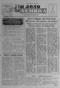 № 3 3 1 7 марта 1 9 7 7 года i i i i i l l i i i i i l i u i l l l i i i i i i i i i i i i l i i i i i l i n i l «ЗА ДЕЛО Л Е Н И Н А » О К Т Я В V h 60 П Я Т И Л Е Т К Л В Т О Р А Я ( 1 9 8 3 - 1 9 3 7 I I . ) П р о ш л о п я т ь л е т - СССР из страны аграрной превратился в страну Индустриальную. За п я ти ле т ку вступило в строй 1 5 0 0 новых промышленных предприятий. К к он ц у 1 9 3 2 года мы имели около 2 1 2 тысяч колхозов, более 2 4 0 0 МТС, более 4 5 0 0 совхозов. Сельское хозяйство страны получило за это время тысячи тракторов, автомашин, зерновых комбайнов. Еще в 1 9 3 1 году на полях колхозов и совхозов водили тракторы, работали на комбайнах более 2 0 0 0 0 0 трактористов и комбайнеров. В 1 9 3 3 году Москва принимала делегатов Первого Всесоюзного съезда колхозников - ударников. Страна решала колоссальные задачи. Лозунгами времени были: грамоту — всем, , лампочку Ильича — всем, работать т а к , к а к Алексей Стаханов, Макар Мазай, тк а ч и х и Виноградовы, к а к тр актор ис тка Паша Ангелина. Во Всесоюзном соревновании ж е н с к и х тр акторных бригад участвовали 2 0 тысяч тр акторис ток. В годы второй пятилетии в Москве пущена первая очередь метро, начала действовать научная станция «Северный полюс», Чкалов , Байдуков и Беляков первыми в мире проложили трассу Москва — Северный полюс — Америка. Стратостат « О с о а в и а х и м -1 » подымает молодых исследователей космоса Васенко, Федосеенко и Усыснина на 2 2 тысячи метров. Разве сбо всем с к а ж е ш ь ! — Время, вперед! — звала молодежь. Выше всех, дальше всех, быстрее всех — вот девиз авиаторов, девиз молодежи. И казалось, что т • для каждого сердца поэт восклицал: Я планов наших люблю громадье, Ра змаха ш а ги саженьи. Я радуюсь маршу, которым идем В работу и в сраженье. Декабрь 1 9 3 6 года. П р и н я т а к с в а я Ко н с т и т у ц и я . А через год— первые выборы в Верховный Совет СССР. РАЗМАХА ШАГИ В колхоз. (Снимок 30-х годов) Знамеиательвые даты 16—20 марта 1933 г. со стоялся 1 съ езд к о л х о з ников — ударников Западно -С ибирск ого края. Он подвел итоги первой пятилетки, к о л л ек тив и зации сельского хозяйства . П рисутствовали 743 де л е г а та , 24,2 процента которых составляли ж е н щины. С докладом выступил секретарь крайкома ВКГ1(б) Р. И. Эмхе. Было принято обращение участников съ езда ко всем колхозн икам З а п а д ной Сибири.. В марте 1934 г. Новосибирск посетил председ атель В Ц 11К М. И. Калинин. 18 марта на II краевом слете колхозников-уддрников он вручил Западно -Сибирск ому краю орден Ленина . 25 марта на расширенном пленуме крайкома В К П (б ) М. И. Калинин выступил с речью «О се ль сов етах». 27 марта — на собрании рабочих Н овоси бирского депо. В пам ять о пребывании выд аю щегося партийного и государственного д е я т е л я в Новосибирске его. именем назв ана одна из пло щадей города. 16—18 марта 1935 г. со стоялся III съ езд к о л хозников — ударник ов Западно -С ибирск ого кра я. Участников съ е зд а приветствовал- п о з д р а в и т е л ь ной телеграммой Л. М. Горький. ИЗ ВОСПОМИНАНИЙ ВЕТЕРАНА -Мне было 19 лет, когда в паше село приехал молодой учитель,— р ас ск а зыв ае т в етеран колхозного движения Н. С. Лопухов. Учитель о р ганизо вал комсомольскую ячейку. Первыми вступили в комсомол Михаил Лосев, Мартемьян Сомов, Федор Пуговкин и я. З и мой 1929-30 годов с та л у нас организовы в ать ся колхоз. Мы, комсомольцы, вступили в него первыми. Я привел жеребенка- т рехле тка . Моему примеру последов али и другие. Это были бедняки .. Кто в колхоз к о р о 