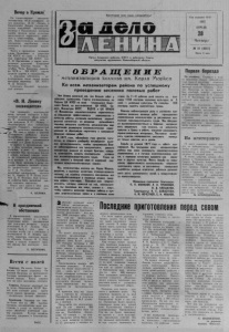 Вечер в Кремле' На торжественное заседание , посвященное 107-й годовщине со дня р ождения В. И. Ленина , в Кремлевский Д ворец съ ездов соб рались передовики производства Столицы и Подмоск овья , ветераны партии, д еятели науки, культуры, представители партийных, сов ет ских и общественных о р г а н и з а ций. Присутствовали иностранные дипломаты, за рубеж ны е гости, советские и иностранные ж у р н а листы. Места в президиуме занимают члены Политбюро и секретари ЦК КПСС во главе с Г енеральным секретарем ЦК КПСС тов. Л. И. Бр ежневым, а т а к ж е р у к о водители делегаций Компартий Вьетнама, Уругв ая , Индии, К о лумбии, Чили, Брази лии, с е к р е т а ри МГК и МК КПСС, другие деятели партии и государства. С д оклад ом «Ленинизм — ^ р е волюционное зн ам я нашей эпохи» выступил се кретарь Ц К КПСС М. В. Зимянин. Состоялся большой празднич ный концерт. «В. И. Л е н и н у п о с вящ а е т с я» Так называ лся тематический вечер, который состоялся в Бер- гульском сельском Д о м е к у л ь т у ры. К знаменательной д ате — дню рождения В. И. Ленина — общественность села готовилась заранее. Учащиеся восьмилетней ' 5 $ч №1' н молодежь прочитали бо- "00 книг о жизни и кипучей деятельности любимого вож дя . П ра здничная программа готови лась в школе под руководством учителей и в Доме культуры. 22 апреля к назначенному с р о ку в Д ом культуры спешили и взрослые, и дети. С большим вниманием был прослушан д о к л а д о вожде, который хорошо донесла до слушателей п р еп о да в а тел ь ница истории 3. В. Голубцова. З а тем были приняты в ряды пионеров учащиеся третьеТо класса. Их приветствовал директор ш к о лы Г. Д . Маляревич , се кретарь партийной организации колхоза им. К. М арк са Д . В. Белой, родитель Д . И. Молоков. Они п о ж е л а ли р ебятам быть достойной см еной ст аршего поколения. Около дву х часов в этот день шел в клуб е праздничный к о н церт. Л. БЕЛОВА. Пролетарии всех стран, соединяйтесь! jM ^ I B Орган Северного райкома КПСС и районного Совета депутатов трудящихся Новосибирской области Год издания 42-й 1977 А П Р Е Л Ь 28 Ч е т в ер г № 51 (4 5 5 7) Цена 2 коп. О Б Р А Щ Е Н И Е м е х а н и з а т о р о в колхоза им. Карла М аркса Ко всем механизаторам района по успешному проведению весенних полевых работ Чем ближе весенний сев, тем больше забот у сельских тр уж е н и к о в . Горячо от кликнувшись на Письмо ЦН КПСС ко всем трудящимся Советского Союза, на постановление Ц К КПСС, Совета Министров СССР, ВЦСПС и Ц К ВЛКСМ « 0 Всесоюзном социалистическом соревновании за повышение эффективности производства и каче ства работы, успешное выполнение заданий десятой п я ти л е т ки» по вопросам дальнейшего подъема сельского хозяйства, механизаторы еще энергичнее развернули социалистическое соревнование за образцовую подготовку и проведение весенних полевых работ. В 1 9 7 7 году, юбилейном году десятой п я т и лет ки , от каждого хлебороба потребуется высокая организованность, особое н а п р я ж е н и е . В а ж но заблаговременно все предусмотреть, довести конкретные задания до каждой бригады, к а ж д о го тракториста, создать земледельцам условия для высокопроизводительного труда. У с п е х на севе зависит в большей мере от надежной подготовки сельскохозяйственных машин. Мы, механизаторы колхоза им. Карла Марнса, досрочно, с высоким качеством отремонтировали т е х н и к у , на л и н ей ку готовности поставлены все почвообрабатывающие 