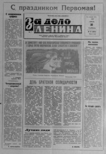 С опережением графика С оп ер еж ением г р аф и к а т р у д я т с я лучшие бригады м е ж колхозной строительной о р г а низации. Коллекти в под р у к о водством А. И. Скоробогатов а по итогам четырех месяцев п е ревыполнил з а д ан и е на 40 процентов. В н астоящее время бр иг а да плотников строит двухк ва ртирный жилой дом (в деревянном исполнении). Лимой ж е Анатолий Иванович вместе с то в арищам и по р а б о те з а г о т а в л и в а л деловую д р е весину. Вчетвером з а полтора месяца доставили на ск лад более 500 кубометров. Хорошо р а б о т а л а на п ер в о майской в ахте бр иг а да А. П о ловцева на распиловке леса. Ежедневно цех вы д ае т ст р о и телям около 20 кубометров готовой продукции — доски, тес. брус. В ц е л ей ж е строители меж- колхозстроя з а четыре месяца освоили более 273 тысяч р у б ле, то есть план перевыполнен. Сейчас все объекты у к о м п л е к то ваны бригадами , в д о с т а т о ч ном количестве имее тся с т р о и тельных ма териалов — песка, цемента, щебня, пиломатерна- . лов, железо бетонных конструкций. П о р а д о в а л и строители и ж и телей села В ерх-К расноярки . Здесь в канун п р а зд н и к а П е р вом ая сдан в эксплуатацию д вухк ва ртирны й жилой дом. Успешно в ед ется строительство административного з д а н и я к о л хоза и ма га зи на « П р о м т о в а р ы » . Словом, строители МСО д о с тойно встречают праздник П ервомая. С. ДЕД К О В , экономист МСО. Четырехмесячный —досрочно! Коллектив маслодельного цеха м а с л о з а в о д а встречае т празд ни к П е р вом а я досрочным выполнением н а р о д н о х о зя й с т венного плана четырех месяцев по вы р а бо тк е и р еа лизации ' масла. Государству о т г р у ж е но около 1400 центнеров этой ценнейшей продукции, в том числе в апреле более 500 центнеров. Причем, 9 0 процен тов оценено высшей к а т е г о р и ей качества. Успех д ел а решают люди. Старате льно , со знанием дела относится к порученной раб оте лаб о р ан т , комсомолка Лю бовь Маляревич. Л ю бо в ь Н и к о л а е в на на производстве не нови чок — 7 лет отдан о любимой профессии. И всегда она я в л я е т с я примером в работе . Высокой выра ботки е ж е сменно до би в аетс я комсомолец Василий Хмелев. Он на своем стареньком ав том о б и ле в о вр е мя д о с т а в л я е т сливки из кол- хозов, перевозит разл ичные грузы д л я н у ж д предприятия . Вверенный ему ав том о б и ль всегда со д е р ж и т в технически исправном состоянии. Успешно выполняет д о в е д е н ные з а д а н и я и коллек тив цель номолочного цеха. С теплотой о т зы в а е т с я дире кция з а в о д а о старейшей работнице цеха П. Е. Паршиной. Полина Е г о ровна около 30 лет т р у д и т с я в этом цехе. Она охотно д е л и т ся накоп ленным опытом с м о лодыми рабочими, а в о т д е л ь ных сл у ч аях з ам е н я е т м а с т е ра. Д ал ьн ейш и х успехов вам , маслоделы. Н. АЛЕКСАНДРОВ. «Пролетарии всех стран, с о единяйтесь!» — этот боевой лозунг братской солидарности трудящихся всего мира в де»ь Первомая звучит по-особому. В этот день под знамена Первомая выходят миллионы людей труда — рабочие, крестьяне, интеллигенция всех стран социалистического лагеря я стран, борющихся за свое освобождение от гнета неоколониализма, и стран капиталистических. Под пурпурные полотнища Первомая выходит все прогрессивное человечество, борющееся за мир, демократию, социализм. Советский народ встречает радостный праздник I Мая досрочным выполнением социалистических обязательств, приня