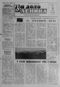 2 r i l l l l l l l l ! l l l l l l1l l l | | | | | | t l i l l i l l ! l | | | | | | | | | | | | | | | | | | | | | | | | | | | | | | | | | | | | | | | | | | | | ! | | | | | | | | | | «ЗА ДЕЛО Л Е Н И Н А » I I I I I I I I I I I I I I I I I I I I I I I I I I I I I I I I I I I I I I I I I I I 1 1 9 мая 1 9 7 7 года. ф № 6 0 = = Н а в с т р е ч у в ы б о р а м ===== А ги тм ассов ая р а б о т а оживилась П редстоящие выборы в местные Советы деп утатов т р у д я щихся — в аж н о е событие в политической жизни страны. И зб и р а т е л ь н а я кампания проходит под зн аком подготовки к 60-летию Великого О к т я б ря. Под готовка к выборам — смотр деятельности Советов. В Ново - Троицкий сельский Совет в прошлый созыв было избрано 25 деп у тато в , изби р атели им дали 4 важных н а к а за. В настоящее в.ремя все д е путаты о своей деяте льности отчитались , а нака зы все выполнены. Что уж е сделано по подготовке к новым выборам? Определены границы избирательных округов и участков, утв ерждены составы и зб и р а тельных комиссий, определены места и утв ерждены з а в е д у ю щие агитпунктами, на з а с е дании партбюро утверждены планы работы к л у б а , библиотеки, лекторс кой группы и аги тколлек тив а на период и весенних полевых работ,- и на период подготовки к выборам. Это, т а к ск аз ать , организаци онные мероприятия. Агитпункты оформлены наглядной агитацией, обозначены избирательные участки. На днях состоялось совместное совещание агитаторов и л екторов. Агитаторы распределены по десятидворкам , к а ж д о му даны темы проведения бесед с избирателями. Лекторы начинают чтение лекций, также у в я зы в а я их с выборами. Такое же совещание проведем в конце ма я с вопросом —что практически сделано, что н а до будет еще сделать до дня выборов. К этому времени проведем специальные беседы с молодыми избирателями, выдвижение кандидатов в д е путаты и встречи их с избирателями. У нас ст ало уже о б я з а т е л ь ным выступления перед агитаторами и лекто рами председ ател я колхоза и председателя сельисполкома. Они информируют их о делах в хозяйстве, по Совету, сообщают различные цифровые данные, имена передовиков и т. д. Эти материалы затем аги т а т о ры используют в беседах с избирателями. Поэтому грудящиес я Н ово - Троицкого сельсовета знают, как обстоят дела в колхозе, -в торговле, в школе и других сельских учреждениях. Наши агитато ры и лекторы используют для бесед с населением местное радиовещание, выпускают «Боевые листки», «Молнии». Д альн ейшее укрепление единства партии и народа — основное условие успеха выборной кампании, за лог победы блока коммунистов и беспартийных на выборах. По- этому-то наши идеологические работники много отдают сил и ст арания лекционной пропаганде, агитации среди населения. А. ЗАЙЦЕВ , се кретарь партбюро колхоза «Заветы Ильича». В Останинском агитпункте Агитпункт в с. Останинке в этом году располагается в просторном здании сельской библиотеки. Здесь всегда чисто, уютно, помещение хорошо оформлено наглядной агитацией. Для избирателей организован «стол справок». Есть в агитпункте библиотечный плакат «Государство — это Mta» и „подборка соответствующей литературы. Дежурные агитаторы готовы дать разъяснение по любому интересующему избирателей вопросу. Вечерами собираются люди в приветливом здании агитпункта. Они приходят сюда обменить книгу и послушать очередную беседу агитатора. Агитпункт работает по плану. В него включены такие мероприятия: беседы по теме «Навстречу выборам», 