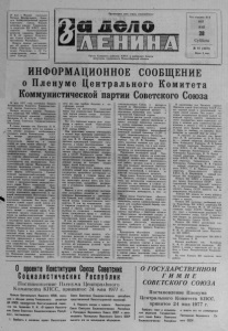24 мая в Москве состоялся Пленум Центрального Комитета Коммунистической партии Советского Союза. Пленум заслушал до к л а д Генерального секретаря ЦК КПСС, председателя Конституционной комиссии товарища Брежнева Л . И. «О проекте Конституции Союза Советских Социалистических Республик». Пленум принял постановления «О проекте Конституции Союза Советских Социалистических Республик» и «О Государств енном гимне Советского Союза». Пролетарии всех стран, соединяйтесь! Орган Северного райкома КПСС и районного Совета депутатов трудящихся Новосибирской области Год издания 42-й 1977 МАЙ 28 С у б б о т а № 64 ( 4 5 7 0 ) Цена 2 коп. И Н Ф О Р М А Ц И О Н Н О Е СООБ ЩЕ НИЕ о П л е н у м е Ц е н т р а л ь н о г о К о м и т е т а Коммунистической партии Советского Союза 24 мая 1977 г ода состоялся Пленум Центрального Комитета Коммунистической партии Советского Союза. Пленум заслушал д о к л а д Генерального секретаря ЦК КПСС, председателя Конституционной комиссии товарища Брежнева Л. 14. «О проекте Конституции Союза Советских Социалистических Республик». В своем док л аде тов. Брежнев Л . И. остановился п р еж д е всего на вопросе о том, почему возникла необходимость с оздават ь новую Конституцию СССР. З а четыре десятилетия после принятия ныне действующей Конституции, сказал он, в стране нашей, во всем нашем обществе произошли глубокие изменения. В Советском Союзе построено разв итое , зр елое социалистическое общество. Крупные, принципиальные перемены затронули все стороны общественной жизни в результате успехов социалистического строительства под руководством Коммунистической партии. Неузн аваемо изменилась экономика страны. В ней б е з раздельно господствуют социалистические формы, собственности . Единый мощный народнохозяйственный организм развивается на о с н о в е с о ч е т а н и я до стижений научно-технической революции с преимуществами социалистического строя . Растет социальная о д н о родность советского общества. Еще прочнее стал нерушимый сою з рабочего класса, колхозн ого крестьянства и на- родой интеллигенции. Постепенно стираются различия м е ж д у основными с о циальными группами. Все более сб ли жаются самим х од ом своей жизни все нации и народности нашей страны. Сложилась новая историческая о бщ ность людей — советский народ. С построением зрелог о социализма, с переходом на идейно-политические позиции рабочего класса всех слоев населения— и государство наше, возникшее как ди ктатура пролетариата, переросло в о б щенародное государство . Сильно изменились м еж д у н а р о д н о е положение Советского Союза и весь социально-политический облик мира. Покончено с капиталистическим окружением СССР. Социализм превратился в мировую систему, сложилось могучее социалистическое с о д р у ж е с т в о . Существенно о с л а б лены позиции мирового капитализма. Десятки молодых государств , бывших колоний, выступают против империализма. Появилась реальная возможность предотвратить новую мировую войну, хотя это еще тр ебует больших и н а стойчивых усилий. Опираясь на достигнутое, советский народ под руководством Коммунистической партии решает теперь исторические задачи коммунистического строительства. Все эти перемены нашли свое отр а жение в проекте новой Конституции СССР в соответствии с установками XXV с ъ е з д а КПСС. При подготовке проекта учитывались