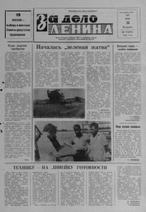 19 июнявыборы в местные Советы депутатов трудящихся Пролетарии всех стран, соединяйтесь! -------------------- --------- v------------------- Орган Северного райкома КПСС и районного Совета депутатов трудящихся Новосибирской области Год падания 42-й 1977 И Ю Н Ь 14 Вторник № 7 К ( 4 5 7 7 ) Цена 2 коп. Началась „зеленая жатва" Курс партии одобряем Итоги майского (1977 г.) П л енума Ц К КПСС, задачи партийных организаций, вытекающие из его решений, положений и выводов, содерж ащ и хся в д о к л а д е ' на Пленуме Генерального секр етаря ЦК КПСС, П редседателя Конституционной комиссии товарища Л. И. Бреж не ва , обсуждаются на проходящих в стране Пленумах обкомов партии и собраниях пар тийного актива. Собрания партийного актива состоялись в Волгограде, Алма- Ате, Иркутске, Куйбышеве, К а раганде, Целинограде, Ярославле и других областных центрах. Их участники единодушно одобрили Ш проект новой Конституции СССР, призвали коммунистов, всех т р у жеников достойно встретить 60- летие Великого Октября. * » * К а ж д а я строка прЪекта Конституции проникнута заботой о советском человеке, о п роцв етании нашей могучей Родины, с к а за л, высту пая на митинге б ригадир бетонщиков Усть-Илимской ГЭС М. Васильев. Экономические и социальные преобразо вания особенно ярк о видны в Сибири. У нас, в частности, сооружаются такие гиганты индустрии, как ГЭС, лесопромышленный комплекс. О д о б р яя проект Конститу ции, мы обещаем родной партии, что к 60-летию Великого Октября пустим гидроэлектростанцию на проектную мощность. Вчитываешься в д о к л а д т о в а рища Л. И. Бр ежнева на майском Пленуме Ц К КПСС и особенно ярко видишь, какой славный путь пройден страной, какие гр ан диозные задачи нам предстоит решать, з ая ви л на митинге пред седатель известного ,в Латвии колхоза «Лачнлесис» Э. Кау- линын. Когда 30 лет н а з а д мы объединились в колхоз, то имели только один трактор, а _,теперь в хозяйстве их свыше 50, много комбайнов и другой техники. Ж и вем в благоустроенных к о тте дж ах и к в а р ти р а х с городскими удоб ствами. И всегда помним о том, что все это достигнуто в братской семье советских народов с помощью всей страны. ТАСС. В колхозе «Путь к ком м у низму» немало содержитс я скота на фермах. Чтобы обеспечить ему сытную зимовку, предстоит со зд ать прочную кормовую базу. З а д а н и е напряженное. Предстоит з аго то вить 18814 центнеров сена, з аложи ть 11331 центнер сенаж а и около 10 тысяч тонн силосной массы. Корма в хозяйстве з а г о т а в ливают не' только с ес тественных сенокосов. На больших площ.а'дйх поднимаются одно летние трапы, ку куруза, подсолнечник. Эти зеленые план тации — главный источник кормовой базы д л я общественного животноводства. А как же обстоят дела с подготовкой к сенокосной стр аде? На этот вопрос, не ск рывая улыбки, отв етил инженер Н. И. Шичкин: — Механизаторы стараю тся , приближаю тся к финишу. З а вершается ремонт всей сеноуборочной техники. В н а с т о я щее время идет к ом п л е к т о в а ние агрегатов людьми. — Сегодня начали косовицу трав ,— неохотно информирует пас секретарь парткома А. А. Иванов,— хвалиться пока нечем, ведь это всего лишь пробный выезд. З а околицей слышен монотонный шум работающих д в и гателей. По большому полю в еличаво двигаютс я степные «корабли». З а штурвалами двух комбайнов д в а коммуниста — А. А. Иван ов и В. АДмитриев. Г устая т р а в а не позволяет вести косовицу на боль