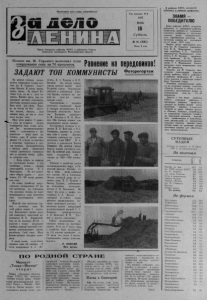 Пролетарии всех п р а н , соединяйтесь) JSL&JiO — р -------- р Орган Северного райкома КПСС и районного Совета депутатов трудящихся Новосибирской области Год издания 42-й 1077 ИЮЛЬ 16 Суббота № 85 ( 4591) Цена 2 коп. Колхоз им. М. Горького выполнил план скирдования сена на 70 проценто в . _ _ _ _ _ _ _ _ _ Равнение на ЗАДАЮТ ТОН КОММУНИСТЫ шшвт ] передовиков: Фоторепортаж На многие гектары раскинулись сенокосные угодья колхоза им. М. Горького вокруг озера Кирчик. И всюду травы, травы, травы... Да какие! Местами чуть ли не в рост человека. Именно здесь, как утверждают местные старожилы, крестьяне испокон веков добывали корм для скота. Правда. не всегда он был доступен: зальют, бывало, луга вешние воды, да так и остаются на все лето. Иное дело нынче. С ранне- * го утра до позднего вечера оглашаются луга гулом моторов. Два механизированных звена — сургутовское и федоровское — ведут здесь з а готовку сена. В работе ежедневно 12 и более гусеничных и колесных тракторов и другая техника. Кормодобытчики с первых дней сенокосной страды развернули соревнование за высокие темпы работ, за качество сена. — Если судить по цифрам, то сургутовцы близки к выполнению плана,— говорит . председатель колхоза И. Д. Виноградов. — Но все выполняют общую задачу — заготовить 1 8 — 2 0 тысяч центнеров сена. По плану хозяйству предусмотрено заскирдовать 12 ты сяч центнеров, но, учитывая, что закладка сенажа не будет производиться, план заготовки сена увеличивается почти вдвое. Первый этап заготовки кормов — косовица трав. На этой работе занято 5 агрегатов. Возглавляет группу косарей коммунист, известный механизатор И. Б. Лещинский. Сам он на тракторе ДТ-54 в агрегате с тремя косилками (снимок первый верхний) еж е дневно перевыполняет нормы выработки. Свой опыт Иван Брониславович передает молодежи. 6 июля тремя агрегатами скошено трав 54 гектара. В честь передовиков А. А. Легачева, В. А. Чернова и Н. И. Вдовина (на втором снимке справа налево) поднят флаг Трудовой славы. Старательно работает и комсомолец Алексей Вдовин, которого вы видите на этом же снимке первым слева. Своевременно, с хорошим качеством сталкивают валки к скирдам механизаторы И. А. Степанов, комсомолец Вячеслав Карпович, коммунист Д. М. Липатов и И. П. Ясен- ков. (На третьем снимке: они закладывают новую скирду). Заслуживают похвалы и аг регаты Н. В. Петухова и Н. Д. Степанова, занятые на сгребании сена в валки. Дружно, слаженно работают на стогометателях член КПСС И. А. Архипов и комсомолец Виктор Степанов, (На нижнем снимке Виктор поднял очередную копну). За рабочий день скирдов- щики укладывают сена в скирды пр G00— 8 0 0 центнеров. Работает в хозяйстве третье механизированное звцно, в Рязанской бригаде. Отрадно то. что в этом звене работают все хорошо. Зто и Александр Обухов, который занят на косовице трав, П. Т. Хрущев и Виктор Хрущев, работающие на толкающих волокушах, метчик С. В. Волохович. Не сидит без дела и шофер ав томобиля А. Л. Багров — в свободное от рейсов время работает вершилыциком. Активно принимают участие в заготовке кормов заведующий молочнотоварной фермой С. С. Фомишов, скотники-пастухи А. И. Николаев, Н. И. Хрущев и другие колхозники. Сейчас механизаторы не снижают темпов на заготовке кормов. Если на 8 июля сена_. в хозяйстве было заскирдовано 5 ,5 тысячи центнеров, то 12 июля уже более 8 тысяч. Соревнование между звеньями ширится. Н. И П А 