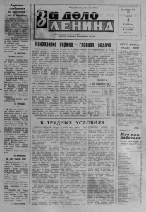 Короткие сообщения из колхозов « П У Т Ь Н К О М М У Н И З М У » в пятницу, 2 9 июля, в середин»? дня на Северный хлебоприемный пункт поступили первые 26 центнеров хлеба нового урожая. Приемную квитанцию за Л5 1 получил водитель колхоза «Путь к коммунизму» Виктор Маляре- вич. Затем Виктор Раздобаров привез еще две автомашины с зерном. В общей сложности из этого хозяйства получено 93 центнера зерна. Приступил к хлебосдаче и колхоз «Восход», отправив первую машину с зерном нового урожая. А. К А С Т Е Р И Н . « П А М Я Т Ь Л Е Н И Н А » В колхозе «Память Ленина» ведут сельскохозяйственные работы в комплексе: убирают зерновые, закладывают сенаж, сеют рожь. Благодаря отличной работе механизаторов Больше-Куликовской. и Усть-Ургульской полеводческих бригад здесь заложено И ЗО тонн сенажа. Начата уборка силосных. Выехали на косовицу в Больших Куликах механизаторы М. Бессонов, Н. Куликов, В. Чикунов, В. Лушов. Зеленую массу к местам закладки отвозят также трактористы колхоза прицепными тележками. Комбайнеры колхоза ведут косовицу ржи. А. АР К А Д Ь ЕВ . • • • 30 июля на зерноток колхоза «Память Ленина» прибыла первая машина с зерном нового урожая. Его привез молодой водитель комсомолец Анатолий Шаламов. Он принял хлеб от комбайнера Алексеевской бригады М. Е. Шаламова. В этой бригаде создано звено, состоящее из трех комбайнеров. Возглавляет этот коллектив опытный, умелый механизатор А>Е. Герлиц. В звене между комбайнерами «распределены обязанности». Андрей Егорович ведет косовицу, а Михаил Егорович и Петр Внуков ведут обмолот зерна. Звену придан грузовой автомобиль. Работа в звене идет слаженно. М. М И ХА Й Л О В . ИМ . X X I I СЪЕЗДА КПСС Механизированное звено в составе Н. Гвоздева, Ф. Ми- халевича, П. Лизунова, А. Васильева и других механизаторов первой бригады успешно ведет скирдование сена. На 28 июля этот коллектив заготовил 4 3 0 0 центнеров отличного корма. Звено несколько дней занималось севом ржи, но затем вновь приступило к сеноуборке. — Заготовку сена будем вести до 2 0 — 25 августа,— сказал бригадир Ф. А. Пфа- фенрот. — Постараемся выполнить план, чтобы зимовка скота прошла успешно. # А. АЛЕКС АНД РО В . Пролетарии всех стран, соединяйтесь! U Х В Ч Е г У В и Орган Северного рай ком а КПСС и районного Совета д еп у тато в трудящихся Новосибирской области Год и здани я 43-й 1977 АВГУСТ 6 С у бб о т а № 9 3 ( 4 5 9 9 ) Цена 2 коп. Накопление кормов - главная задана Минувшая неделя — с 26 июля по 2 августа — была не особенно удачной для заготовки кормов, особенно для скирдования сена — в ряде колхозов прошли дожди. Тем не менее по району сена заскирдовано более 17 тыс. центнеров, прирост составил 1 2 ,6 процента к плану. По сравнению с этим же периодом прошлого года сена заскирдовано на 33 тыс. центнеров больше. И все-таки в общем заготовка кормов идет малоудовлетворительно. Но, по-порядку. Лучше других шла заготовка сена в минувшую неделю в колхозах «Восход», «Память Ленина» и «7-й съезд Советов», давших прирост от 18 и почти до 2 0 процентов к плану. Особенно по-ударному поработали механизаторы колхоза «Память Ленина». Здесь за неделю уложили сена в скирды около Четырех тысяч центнеров. А восходовцы заскирдовали 2 3 5 0 центнеров. Серьезно поправлено дело с заготовкой сена в колхозе «7-й съезд Советов», где план выполнен уже на 8 0 процентов. Среднерайонный прирост дали колхозы им. К. Маркса, «Борьба за