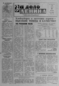 «ЗА ДЕЛО ЛЕНИНА» i i i i i i i i i i M i i i i i i u i i i i i i i i i i i i i i i i i i n i i i i i i i i i i i i i f i i i i i i i i i i i i i i i i i i i i i i i i n i i i i i n n i i 3 N» 9 5 + t 1 августа 1 9 7 7 года i i i i i i i i i i i i l i l l l i i i l i i l l l i i i i u i i i l i i i i i l i i Ж и в о т н о в о д с т в о — у д а р н ы й ф р о н т НАШ РАССКАЗ О ДОЯРКЕ с в о д и л о ходе выполнения колхозами годового п лан а -з а д ан и я поставок государству продуктов животноводства на 1 августа 1977 года (в процентах] Колхозы молоко ск от Борьба з а мир 96,6 44,9 Восход 82.0 45,5 нм. М. Горького 73,6 36,7 им. XX11 съ е зд а КПСС 73,5 45,0 Путь к коммунизму 72,8 50,0 им. К. М арк са 72,6 48,1 7-й съ езд Советов 69,0 59,9 П ам ять Ленина 67.4 49,3 Н о в ая жизнь 64,4 46,4 Заветы Ильича 62,6 45,9 По колхозам 71,8 47,1 По району 72,1 43,8 СВОДКА о ходе выполнения сельсоветами годового п л а н а - з а д ан и я з акупок у населения продуктов жи вотно водства по состоянию на 1 авгу ста 1977 года (в процентах) Сельсоветы МОЛОКО КО X о шерсть| Федоровский 146 24" 106 Гра жданневский 130 6 75 Северный 115 38 94 Чебаковский 113 9 131 Биазинский 82 29 94 Верх-Красноярокий 67 18 74 Останинский 63 51 152 Чувашинский 52 48 116 Остяцкий 51 48 84 Ново-Троицкий 33 14 33 Бергульский 29 50 135 Поткжанов ский — — 80 По сельсоветам 77 29 94 З а июль колхозы района дали прирост по поставкам молока 13 процентов к годовому плану. Н а ибольший прирост — 18,2 процента — д а л колхоз «Борьба за мир». По 15 процентов к годовому плану — т ак ов прирост у колхозов «Восход» и имени К. Марк са. Самый низкий прирост — не многим более 12 п р о ц е н т о в . — у ко лхозо в «7-й съ езд Советов», «Заветы Ильи ча» и им. X X I Г с ъ е зд а КПСС. Мясной скот в июле с д а в а л и только пять хозяйств. Больше всех — 184 центнера — "сдал колхоз «Борьба з а мир». По сравнению с этим же периодом 1976 года молока сд ан о на 4200, мя са — на 840 центнеров больше. Особенно хо рошая п ри бавка молока у колхоза «Восход», мяса — «Борьба з а мир». Вот уже второй год удерживает первенство по надою молока доярка Витинскон фермы Юлия Алексеевна Сергеева. За первые шесть месяцев нынешнего года она надоила 1511 килограммов на корову. Это самый высокий показатель по колхозу «Восход». Дояркой она работает недавно — всего четыре года. А дело было так. Пригласил ее как-то бригадир в контору, попросил принять группу коров. Не отказалась. Пошла. Правда, поначалу было страшновато. Не то чтобы боялась работы (привычна она к ней, с ранних лет познала крестьянский труд). Беспокоилась, что с этой группой коров работало уже несколько доярок — четыре или пять человек сменились до нее. И бывало, что по два дня стоял^ коровы недоенны- ми. — Коллектив новый... Сработаюсь ли, смогу л и . . . ,—волновалась она. Но вскоре все эти опасения и волнения улеглись. И с Уверенной поступью прибл и ж а ю т с я -ж и в о т н о в о д ы к о л хоза нм. XX I1 съ езда КПСС к юбилею нашей Родины. Встав на трудовую предпраздничную вахту они успешно выполняют программу по производству молока и мяса. З а семь месяцев валовой надой молока по колхозу составил 12641 центнер, надой на корову — 1620 ки лограммов, а ударниц- кие доярки надоили на корову более 17 центнеров. Чтобы понять, много это или мало, надо побывать на пастбищах хозяйств а , зн ать положение дел ,в соседних колхозах, и тогда все станет ясно. Ж а р к о е , сухое лето повлияло на рост естественных тр ав, они выгорели, то там , то здесь видишь серые п р о плешины. На значительных площ адях пастбищ тр авы уже нет. В таких условиях многое коллективом подружилась Юлия Алексеевна, и 
