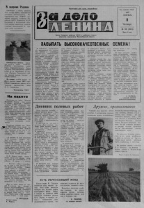В закрома Родины П р е т во р я я в жизнь решения XXV съ е зд а КПСС, комплексную программу преобразования Н е черноземной зоны Р СФ С Р , т р у женики сельского хозяйств а М а рийской АССР, Чувашской АССР, К ал уж ск о й и Костромской о б л а стей успешно выполнили социалистические об яз ате льс тва по прод а ж е зерн а государ ству. Оренбургская область. З а к о н чив ж а т в у ,в своем хозяйстве, уборочно - транспортное звено Героя Социалист ического Труда л а у р е а т а Государственной премии С С С Р В. М. Чердинцева из к о л хоза «Рассвет» Сакм арск ого р а й она о к а з а л о помощь соседям в уборке у р ож а я . На снимке: подбор вал ков на щблях колхоза имени Х<КП парт- съ езда Сакм арск ого района ведет уборочно - транспортное звено В. М. Чердинцева. Фотохроника ТАСС Н а п а х о т е Н е сколько лет н аз ад Василий Федорович Ас адов стал одним из первых водителей мощного т р ак то р а К-700. «Кировец» пришелся по д уш е опытному механиза тору. С тех пор он немало п ереп аха л земли, т а к к а к для этих сельскохозяйственных работ такой т яг а ч подходит к а к нельзя лучше. Широкий з а х в а т плуга, другие высокие производственные достоинств а укрепили мнение трак торис тов о «Кировце», как о надежном помощнике з ем л е дельца. Нынешние осенние дни Васил и й Федорович тож е з а н я т па- " х о т о й — взметом зяби. К аж д о е утро вы е зж а е т он н а поле и го то вит землю под посев в следующем году, в треть ем году пятилетки. •—В среднем з а день вспахиваю по 20 г е к т а р о в , - - говорит о,н,— уХЮтя норма на смену — о д и н надцать. Некоторы е дни о б х о ди лось по 24 г ек тара и -более. Все за ви си т от того, к а ков день. П о следнее время идут д о ж д и . З емля повлажне ет , отсыреет и л япнет на лемеха . П а х о та идет н екачествен ная. Приходится бросать раб оту , ж д а т ь более лучшей погоды. В. Ф. Асаиов пашет землю с весны: п а х а л под яровые, поды м а л пары, в ел дальнейшую их о б работку. И теперь — с плугом. — Конечно, работа о д н о о б р а з на, но з а т о я у ж е се годня знаю, что д е л а т ь мне з а в т р а . В нимательно с л е ж у з а качеством п а хоты, з аб о ч у сь о технике,— п р о д о л ж а е т р ас ска з механизатор . — Л е т восемь н а з а д мелиораторы рас корчев али 64 г е к т а р а . Н а этих з ем ля х мы с о зд а л и сенокосные участки. Но теперь решили в с п а хать, посеять зерновые . Три дня прор аб о тал я на целине. Д ен ь з а днем, смена з а см е ной. В колхозе все больше и больше п о д г о т а в л и в а е т с я земли под будущий у р ож ай . Окончился один участо к, тр ак то р ис т начин ае т второй. З а п а с есть и боль шой: у б р ан а р ож ь с 200 гектаров, см етана солома — знай паши. А. АРКАДЬЕВ. Колхоз имени К. Маркса. Пролетарии всех саран, соединяйтесь! г г 1 11 Орган Северного райкома КПСС и районного Совета депутатов трудящихся Новосибирской области Год издания 43-й 1 9 7 7 СЕНТЯБРЬ 8 Четверг № 1 0 8 ( 4 6 1 4 ) Цена 2 коп. ЗАСЫПАТЬ ВЫСОКОКАЧЕСТВЕННЫЕ С Е М Е Н А ! В комплексе агротехнических мероприятий д л я п о лу ч ения высоких и устойчивых у р о ж а е в всех сельск охозяйст- * венных культур хорошие с е мена имеют решающую роль. Добрые, отвечающие всем тр еб ованиям, семена даю т быстрые и дружные всходы и зд оровы е мощные рас тения , способные лучше про тивостоять болезням и вредителям, успешно борются с сорной р а стительностью, устойчивее п е реносят неблагоприятны е метеорологические усл овия. Высококачественные семена в со четании 