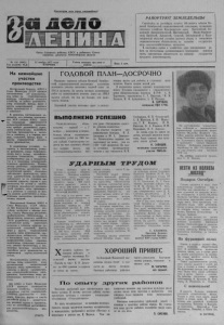 Пролетарии всех стран, соединяйтесь! Л С / I U Орган Северного райкома КПСС и районного Совета народных депутатов Новосибирской области № 136 (4642 ) 15 ноября 1977 года Газета выходит три раза в Год издания 43-й ВТОРНИК неделю Цена 2 коп. РАПОРТУЮТ З ЕМЛЕДЕЛЬЦЫ Соревнуясь за достойную встречу 60-летнего юбилея Великой Октябрьской социалистической революции, труженики сельского хозяйства Красноярского края, Вологодской, Волынской, Днепропетровской, Житомирской, Ивано-Франков- ской, Киевской, Львовской, Сумской, Хмельницкой и Карагандинской областей успешно провели уборку и выполнили социалистические обязательства по продаже государству ряда сельскохозяйственных продуктов. В настоящее время в хозяйствах идет напряженная работа. по обеспечению организованного проведения зимовки скота, выполнению обязательств по продаже государству продуктов животноводства. ГОДОВОЙ ПЛАН—ДОСРОЧНО Накануне славного юбилея Великой Октябрьской социалистической революции коллектив дорожного участка выполнил годовой план на 1 0 1 , 4 процента. За десять месяцев произведено работ по капитальному ремонту дорог на 1 9 0 ,8 тысячи рублей, что так же больше, чем намечалось планом. Дорожный участок ежегодно сдает в эксплуатацию жилье для рабочих и служащих предприятия. Нынче введен жилой дом. В коллективе немало хороших производственников. Успешно справляются с социалистическими обязательствами водитель К-700 А. II. Харитонов, трактористы С. Г. Цирукин, ' М. М. Захаров, И. Ф. Аржанников, А. Н. Яковлев. В. З А Р У Б И Н , н а ч а л ь н и к П Д У 1 7 4 6 . В Ы П О Л Н Е Н О У С П Е Ш Н О Н а в а ж н е й ш и е у ч а с т к и производства Центральный Комитет КПСС и Совет Министров СССР приняли постановление «О дополнительных мерах по стимулированию перехода специалистов сельского хозяйства на работу руководителями отделений, бригад, ферм и других подразделений среднего звена производства в колхозах и совхозах». В принятом постановлении отмечается, что решение поставленных XXV съездом КПСС задач по повышению эффективности сельскохозяйственного производства требует дальнейшего укрепления специалистами важнейших участков производства в колхозах и совхозах, и в первую очередь, отделений, бригад, ферм и других подразделений среднего звена производства. В современных условиях, говорится в постановлении, успешно руководить этими подразделениями могут только квалифицированные специалисты, хорошо разбирающиеся как в технологии, так и в экономике сельскохозяйственного производства. Руководители указанных подразделений непосредственно организуют технологический процесс сельскохозяйственного производства, являются воспитателями коллективов, мобилизуют их на успешное выполнение директив партии и пра. вительства. От знаний и организаторских способностей руководителей среднего звена производства в колхозах и совхозах во мног о м зависит качественное и своевременное выполнение производственных заданий. Центральный Комитет КПСС и Совет Министров СССР о бя за ли ЦК Компартий союзных республик, крайкомы и обкомы партии, Советы Министров республик, крайисполкомы, облисполкомы и Министерство сельского хозяйства СССР разработать перспективные комплексные планы укрепления колхозов и совхозов кадрами руководителей отделений, бригад, ферм и других подразделений среднего звена произво