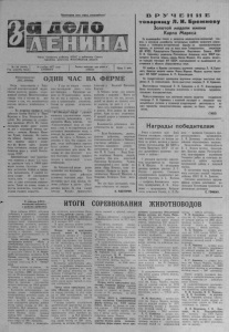 № 138 ♦ 19 ноября 1 9 7 7 года i i i i i i i i f l i l i i l i i l i i i i i l l l i i i l i i l l i l i l i l t i i l «ЗА ДЕЛО Л Е Н И Н А » i i l [ i i i i l i i i i i ! i i i l i l i i i i i i i i l i i i l i l i i i i i l i i i i i i i i l l i l i i i l l l l ! i i l i i i l i l l i i i ! l l i i l l i i i t l i i l i 3 П РОШ ЕЛ М ЕСЯ Ц ... Окончился октябрь . Прошел месяц зимовки скота. Можно подвести итоги того, к а к р а боталось на колхозных ф е р мах в э то т период. В первых числах текущего месяца мы побывали в колхозе имени XXII съ езда КПСС. — Скот поставлен на з и мовку поздно,— р ас ска зыв ал т о гд а пред седатель прав ления А. П. Панов. — Причина — в несвоевременном окончании ремонтных работ наемными бригадами, з а д е р ж к а в подключении оборудов ания ферм к электролинии. Согласны, что причины д о статочно веские. Во всяком случае вина соответствующих организаций есть и нет смысла ее снимать. Об этом неоднократно писалось, говорилось и, пожалуй , не следует повторяться. Тем более, что зимовка .— это не только к о ровы на привязи, но и многое другое. Но главное , видимо, это работа с людьми, т р у ж е никами ферм. Это их быт, их настроение, то есть все то, что прямо не связано с произв одством молока или мяса и на что часто не обращается д о л жного внимания. А то, что это так , говорят факты. Восемнадцатого октября ^*было опубликовано постан ов ление' Ц К КПСС и Совета Министров СССР «О мерах по Неплохое впечатление производит красный уголок Чува- шинской молочнотоварной фермы. Здесь чисто, уютно. Стены выбелены. Пол покрыт линолеумом. Работники сельского Дома культуры и библиотеки Н. А. Седаков, Надежда Курцева, Елизавета Краснова со вкусом оформили наглядную агитацию: стенд « 60 лет Октябобеспечению успешного про ведения зимовки скота в период 1977—78 года», в к о т о ром отмечалось, что партией и правительством поставлен а з а д а ч а — обеспечить безусловное выполнение планов и принятых обязате льс тв по про изводству и п родаж е г о с у д а р ству животноводческой про дукции. Зд ес ь ж е подчеркивалас ь необходимость усилить организа то рскую работу по широкому развертыванию социалистического соревнования работников ферм и ко рмоце- цов за образцовое проведение зимовки скота , всемерно п од д е р ж и в а т ь и разви ва ть творческую инициативу жи вотново дов по увеличению п р о ду к тивности всех видов скота и птицы, получению ма ксималь ной отд ач и от к а ж д о го килограмма ко рма, з а высокую ку льту ру произв одства. З а д а ч а обширная и с л о ж ная. Р еш а ть ее, естественно, предстоит к а ж д о м у работнику фермы, к а ж д о м у руководителю колхоз а. И решать не медля, чтобы и зимой п олу ч а т ь продукции больше и л у ч шего качества. Все ясно. С этим, во в с я ком случае, согласны и р у ководите ли колхоза . —• Мы проводили со в ещ ание с руководящим составом, было за с едание прав ления по рю», библиотечный плакат «Слава труду доярки». Отведен уголок для списка книг по животноводству, рекомендуемых труженикам ферм. Это книги: «Гигиена на молочной ферме» 10. Лисицына, «Мастерство доярки» В. Сизимо- вой, «От каждой коровы по теленку» И. Шабалина и другие. Видное место в оформлении вопросу о зимовке,— говорит Александр Петрвич Панов. — А по поводу постан овления? — Ну, как же . Вот и повестк а д н я ,— показал он з а пись в те тради . Однако, к а к выяснилось из беседы с д о яр к ам и , постановление партии с работниками животноводства еще не о б с у ж д алось (!) — О постановлении я услых а л а от мамы,