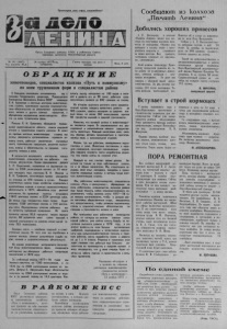 Пролетарии всех стран, соединяйтесь! г к к А Орган Северного райкома КПСС и районного Совета народных депутатов Новосибирской области № 141 (4647) Год издания 43-й 26 ноября 1977Л"ОДа Газета выходит три раза в СУББОТА неделю Цена 2 коп. О Б Р А Щ Е Н И Е животноводов , специ алис тов к о л х о з а «П у т ь к ком му н и зм у » ко всем т р у ж е н и к а м ферм и сп еци али с там района С большим вниманием ознакомились мы с письмом Генерального секр етаря, Председателя Президиума Верховного Совета СССР товарища Л. И. Брежнева к знатным мастерам животноводства страны, принявшим высокие социалистические обязательства по увеличению производства мяса, молока и других ценных продуктов, с обращением передовиков животноводства области ко всем тр у ж е н и к а м ферм. Письмо Л. И. Брежнева, обращение передовиков животноводства области нашли широкий от кли к у т р уж е н и ков нашего колхоза. В ответ на призыв знатны х животноводов страны мы полны решимости организованно провести зи мовку скота, добиться увеличения поголовья скота, производства продукции, досрочно выполнить планы и обязательства по продаже го су дарству молока и мяса. В результате возросшего мастерства наших животноводов, специалистов мы добились н е плохих результатов. Среди передовиков доярка 3. П, Харитонова, надоившая на фуражную к о рову по 2 2 6 0 килограммов молока за 1 0 месяцев т е кущ е г о года, с к о т н и к и В. Я. Иванов и В. Н. Трофимов, получившие привес молодняка на отнорме по 8 7 0 граммов в с у т к и . Раньше намеченных сроков наше хозяйство справилось с выполнением планов и взятых социалистических обязательств в 1 9 7 7 , юбилейном году десятой п я т и л е т к и . На приемные п у н кты отгружено 1 7 6 4 3 центнера молока и 2 3 2 4 центнера мяса. До конца года государству сверх плана будет продано 1 5 8 0 центнеров молока и 3 1 0 ц ентне ров мяса. Определенных успехов добились мы по качеству сдаваемой продукции . Из всего сданного молока 9 2 , 6 процента пошло первым сортом, 8 8 процентов мяса сдано высшей и средней у пита нности со средним весом одной го ловы 3 5 2 килограмма. Зимовка скота — наиболее трудный и ответственный период. От того, к а к мы поработаем в зимние месяцы, зависит дальнейшая судьба н а ших планов и социалистических обязательств. На основе ук репления ма териально-т ехнической базы животноводческих ферм, возросшего, мастерства мы обязуемся добиться следующих показат елей в 1 9 7 8 году: За стойловый период 1 9 7 7 — 7 8 годов мы беремся получить по 1 3 0 0 килограммов, а .за 1 9 7 8 год по 2 2 0 0 килограммов молока на к о рову. Доярка Е. Афанасьева берет обязательство получить по 2 3 0 0 килограммов молока от коровы и за зимний период по 1 4 , 5 цен тнера. У в е личить выход молодняка на 1 0 0 коров и нетелей и довести его до 9 6 телят, добиться среднесуточного привеса до 8 0 0 граммов на голову. На откорме крупно го рогатого енота среднесуточный привес каждого животного довести до 9 0 0 граммов, сдавать молодняк со средним ж и вым весом не менее 3 6 0 килограммов, притом 9 0 процентов высшей и средней у пита нности . Известно, что основой успеха в животноводстве являются корма. От рационального его расходования и ск армливания зависит продуктив ность животных. Наждый килограмм сена, соломы, фуража должен скармливаться в приготовленном виде, с максимальной отдачей. Фермы, где мы работаем, своевременно подготовлены к зиме. Животные постав